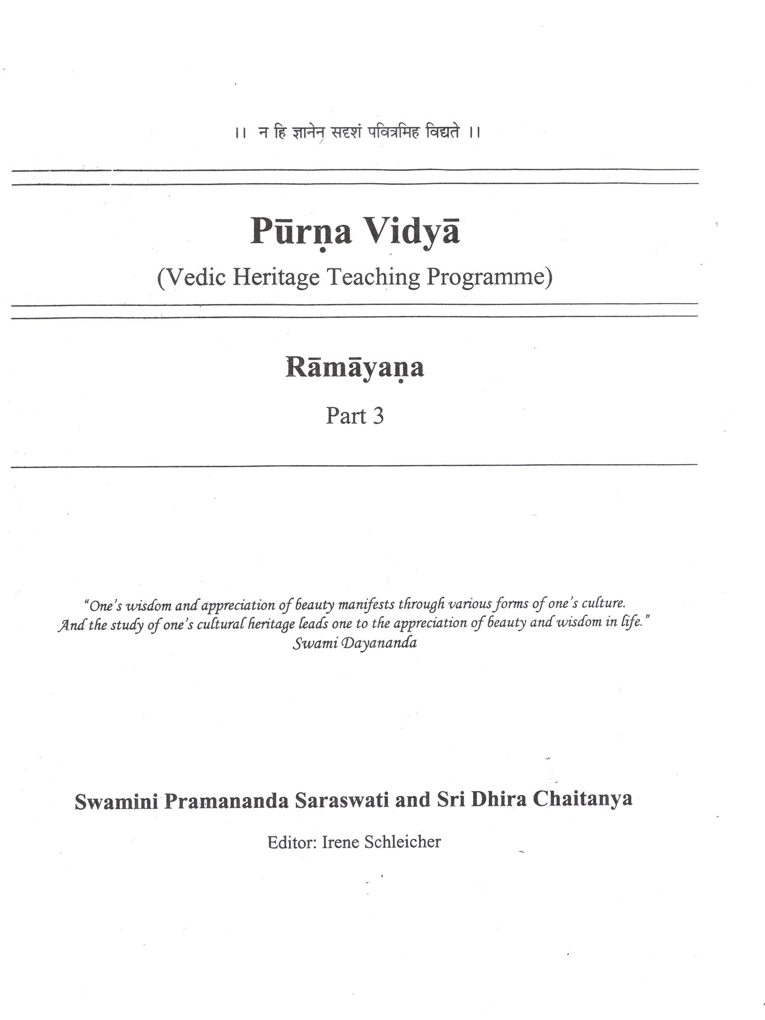Purna Vidya- Text Book Ramayana Part- 3 (Vedic Heritage Teaching Programme)