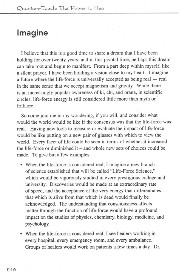 On a purely selfish and personal level, I wish to live in a world where healing is considered real, where healing is universally practiced, and where humanity's kind and generous good nature can be readily expressed. For these and numerous other heartfelt desires, I invite you to join me on a wondrous journey of discovery - the discovery of Quantum-Touch.