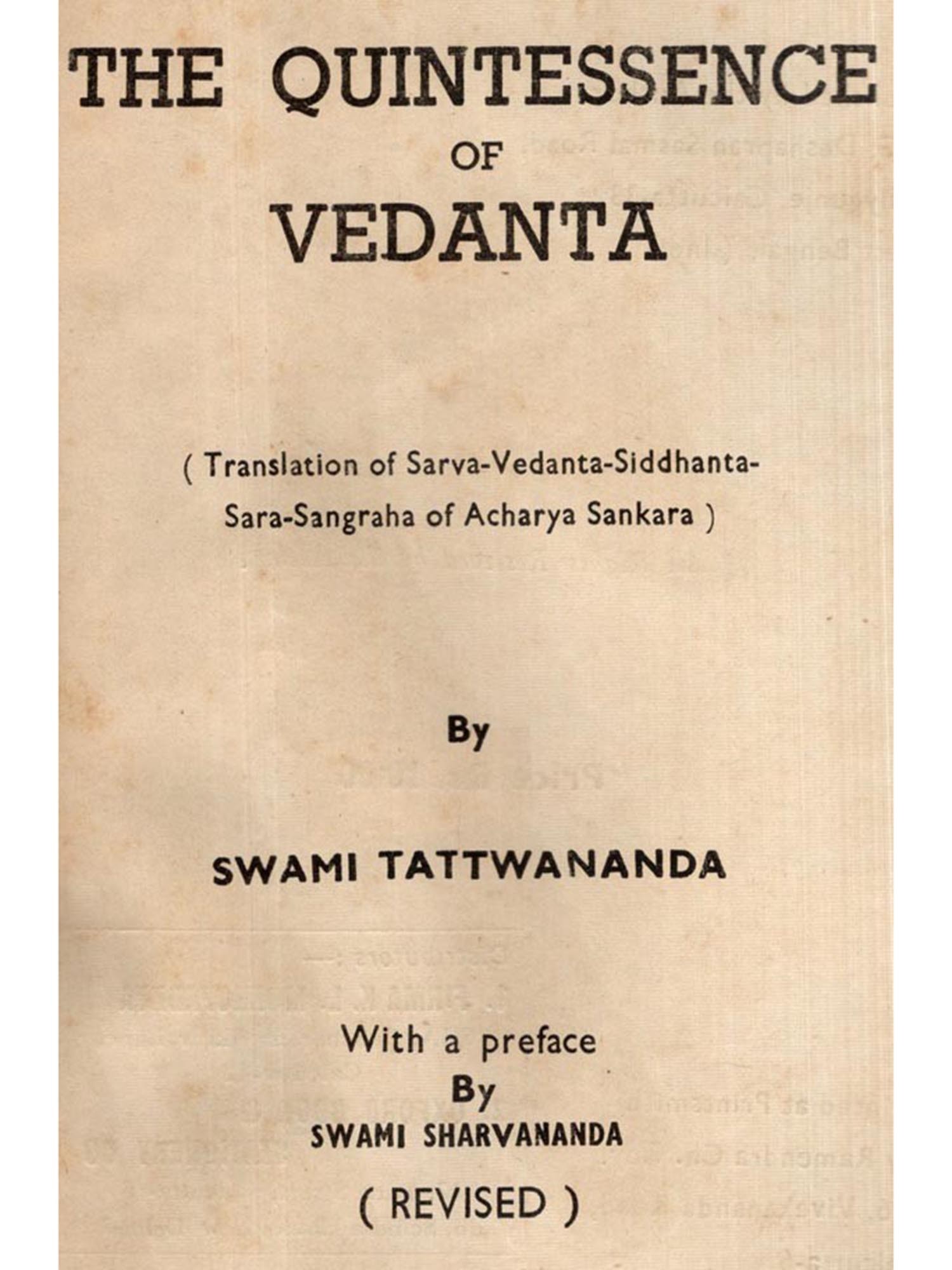 The Quintessence of Vedanta- Translation of Sarva-Vedanta-Siddhanta-Sara-Sangraha of Acharya Sankara (An Old and Rare Book)