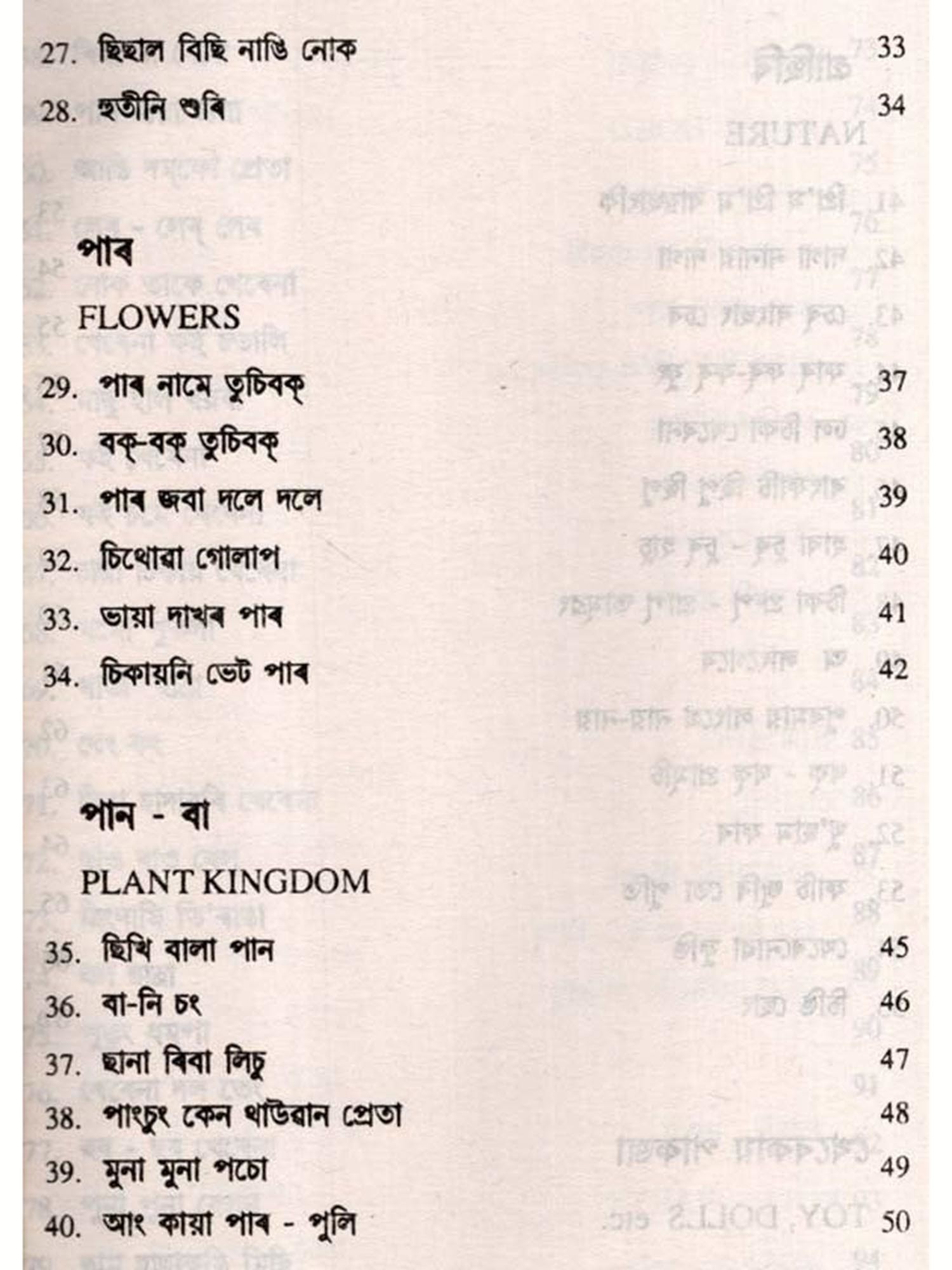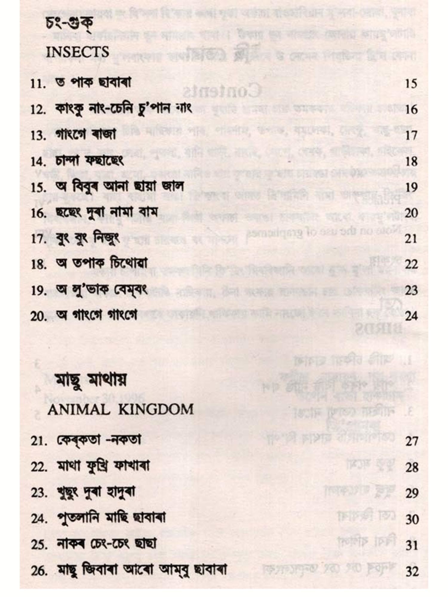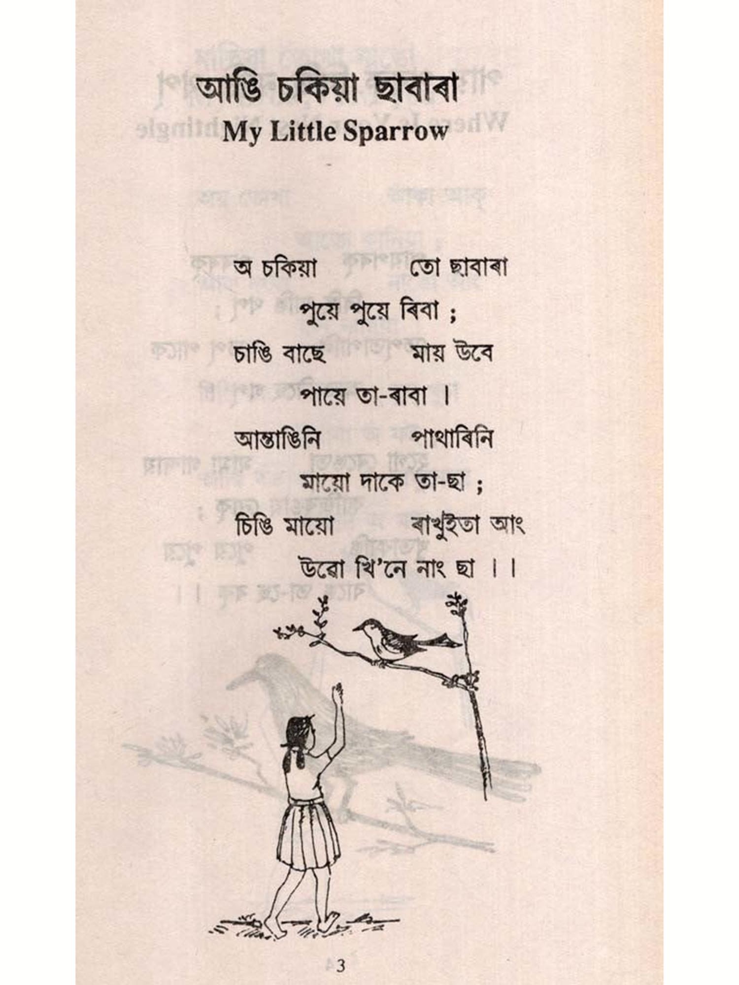 Of late the Institute has been called upon by various State Governments and Agencies to develop materials for mother tongue teaching. Thus, it has developed a set of teaching materials for Andaman Nicobar Islands and other tribal belts and has been preparing a computerised data base in Indian languages. In order to make pre-primary and primary schooling more interesting and livelier it has been seriously working on the preparation of (i) a book of nursery rhymes and (ii) a collection of language games in each of the Indian languages. The present volume Momorangi Mayna Khurang is a collection of 108 nursery rhymes in Rabha, written by a group of native writers. Incidentally this is our first publication in the language. It is gratifying to note that Meghalaya Rabha Association has asked for 5000 copies of this book. The Institute will feel rewarded if this book is received well by the Rabha people in Assam, Meghalaya and West Bengal.