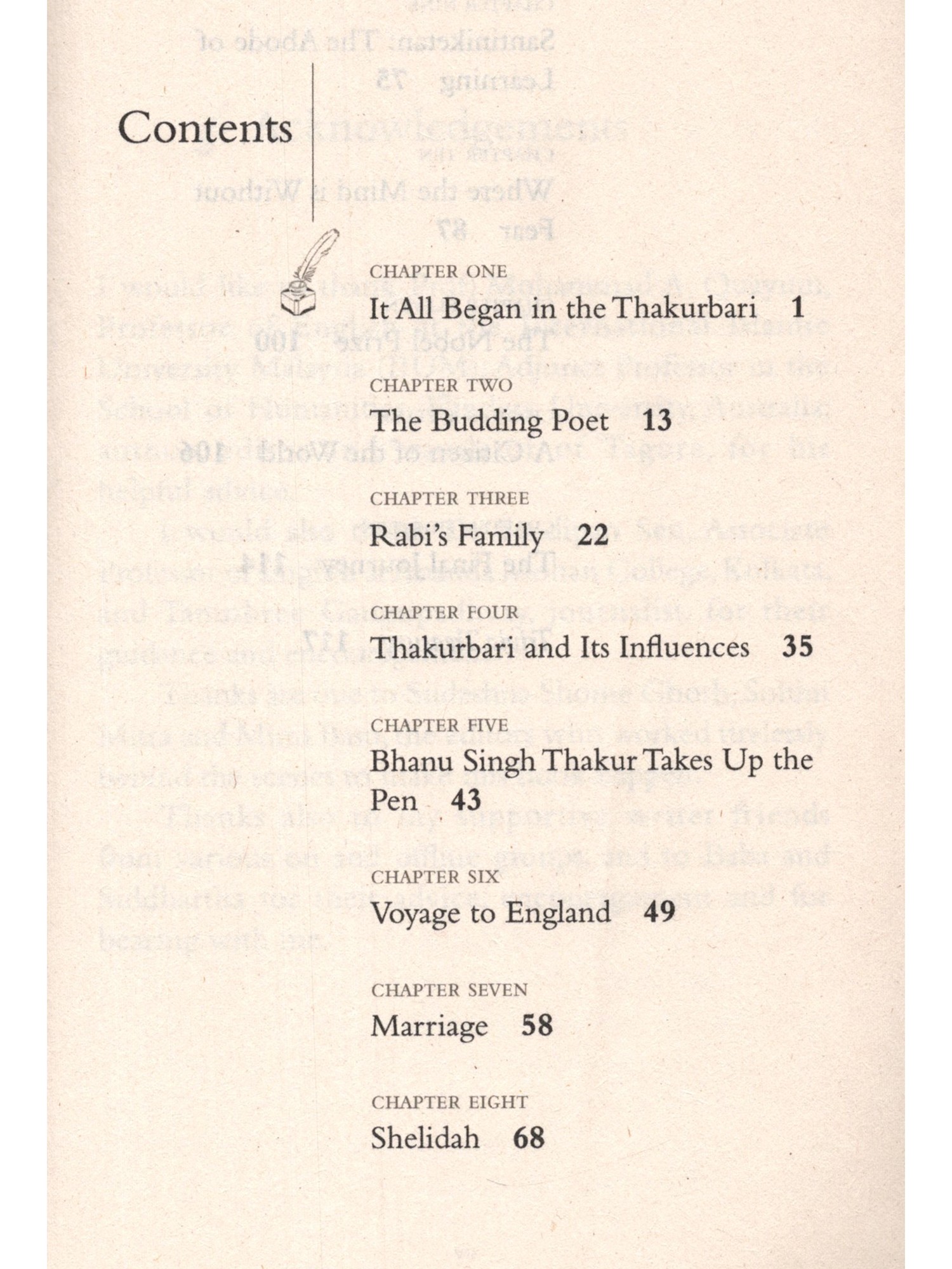 I would like to thank Prof. Mohammad A. Quayum, Professor of English at the International Islamic University Malaysia (IIUM); Adjunct Professor in the School of Humanities, Flinders University, Australia; author, editor and translator of Tagore, for his helpful advice. I would also thank Dr Sandipan Sen, Associate Professor of English at Ananda Mohan College, Kolkata, and Tanushree Gangopadhyay, journalist, for their guidance and encouragement. Thanks are due to Sudeshna Shome Ghosh, Sohini Mitra and Mimi Basu, the editors who worked tirelessly behind the scenes to make this book happen. Thanks also to my supportive writer friends from various on and offline groups, and to Baba and Siddhartha for their advice, encouragement and for bearing with me.