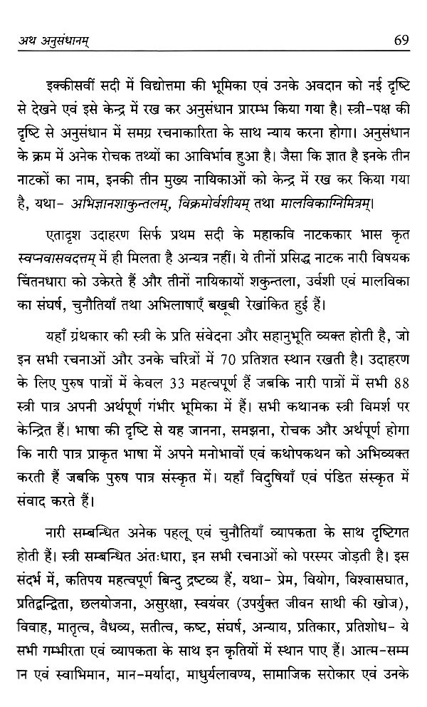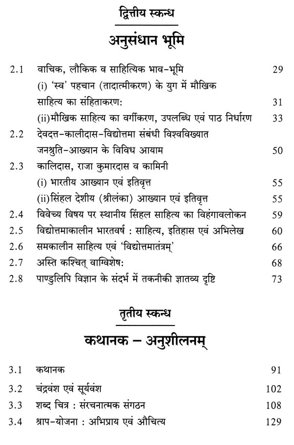 भारतीय और श्रीलंकाई जनश्रुति पर आधारित आख्यान परंपरा, प्रस्तुत साहित्य का अंतः साक्ष्य, अभिलेख और तत्कालीन इतिहास प्रस्तुत शोध की आधार भूमि हैं। इस संदर्भ में, पाण्डुलिपि विज्ञान तथा तत्संबंधी अन्य तकनीकी ज्ञान के साथ स्त्री होने का अर्थ, स्त्रीत्व का अस्तित्व, स्त्री मर्यादित स्वतंत्रता और प्रेम की जीवन्त मूर्ति, स्त्री स्वयंसिद्धा, सम्मान, स्वाभिमान एवं उनके स्वभाव के विविध पक्ष, स्त्री नीति व उनकी कूटनीति; उनकी आत्मगत अभिव्यक्तियाँ, उनके कथोपकथन का विमर्श भी किया गया है। श्रृंगार, अलंकरण, लावण्य व कुलीनता से संवलित स्त्री यौवन, प्रेम और काम की यह कथा, स्त्री मन की गरिमामय अभिव्यंजना करती है। काम के दैहिक, दैविक और आध्यात्मिक पक्ष को निरूपित किया गया है। कथानक, शब्द चित्र, श्राप, पश्चाताप तथा विलाप जैसी घटनायें भी विमर्श में शामिल हैं। इन सभी अंतः साक्ष्यों में विद्योत्तमा के मूलार्थ, शब्दार्थ व भावार्थ सन्निहित हैं। व्यापक अन्वेषण विस्मित करने वाला है और विद्योत्तमा की उपस्थिति लक्षित करता है।