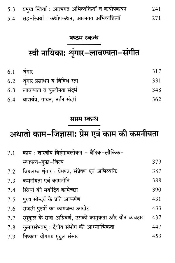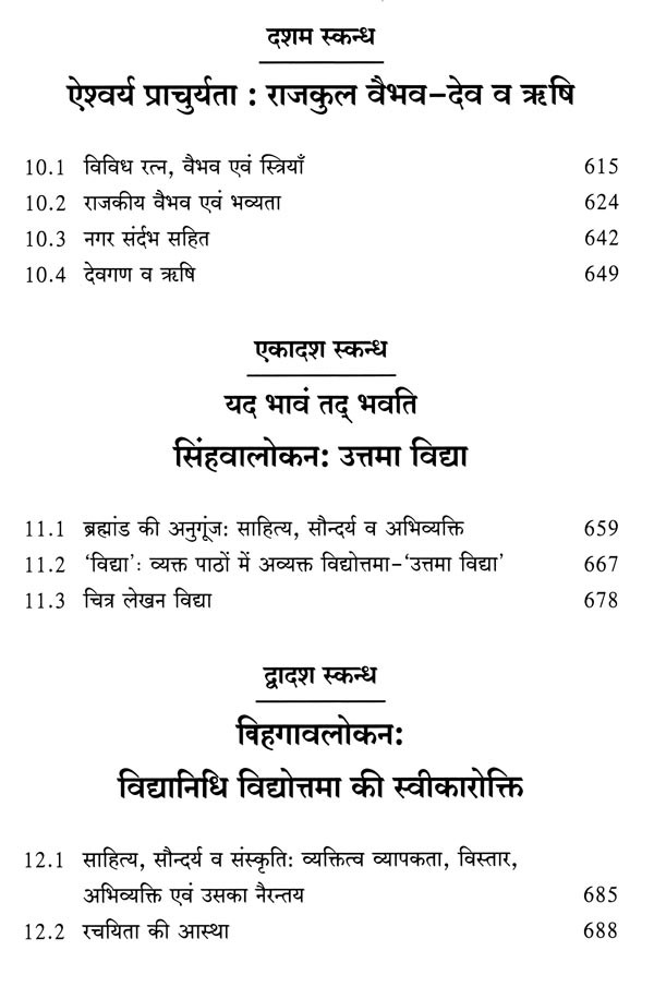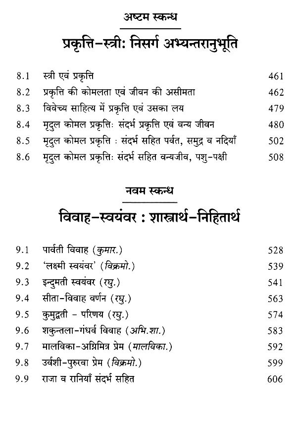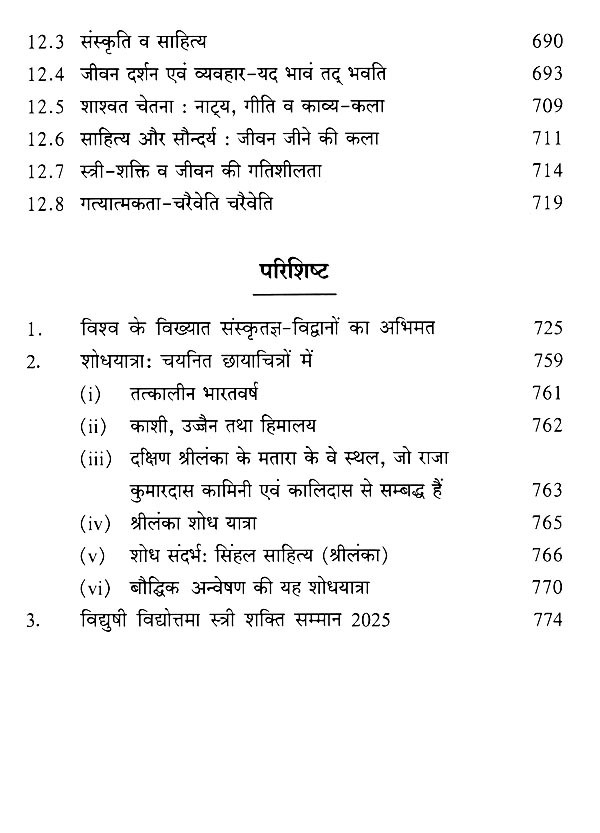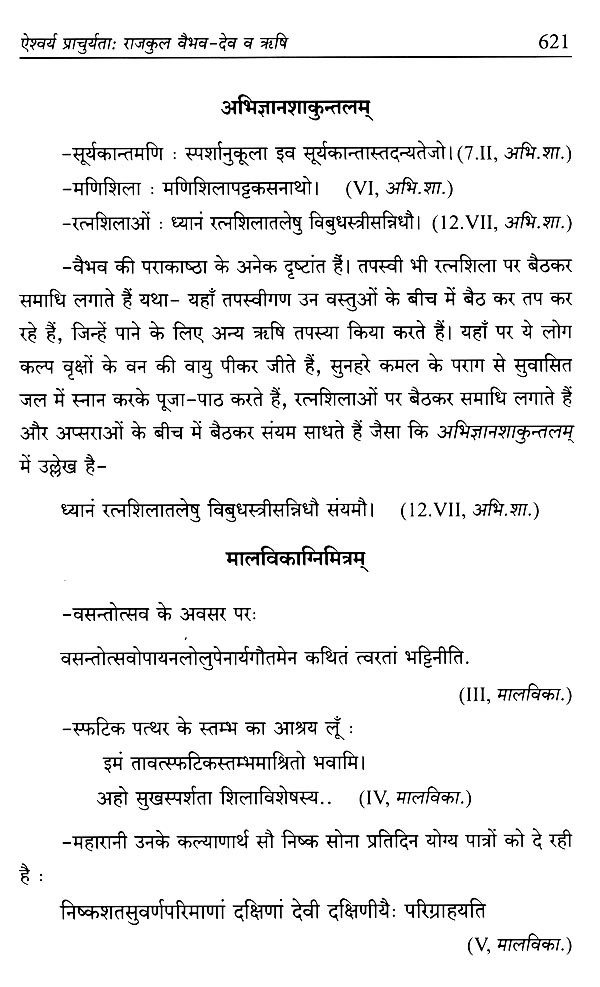 राजकीय वैभव, कुलीनता, सौम्यता, ब्रह्माण्डीय विविध ज्ञान-वेद, उपनिषद्, काम-शास्व व लोक-शास्व से कालिदास नामावली सातों रचनाएं पूरी तरह संवलित है। राजसी वैभव के अनुरूप रलों का व्यवहार, वैभव, आचार, विचार और व्यवहार, महलों की अट्टालिकाऐं तथा अंतःपुर का वैभव, पाठकों को सौम्य वैभवपूर्ण संसार से परिचित करातां है जो स्वयं में अद्भुत है। आसक्ति-विरक्ति के मध्य अत्यंत सूक्ष्म रेखा है। रचयिता में द्रष्टाभाव प्रधान रहता है जो द्रष्टा है यही प्रष्टा है।