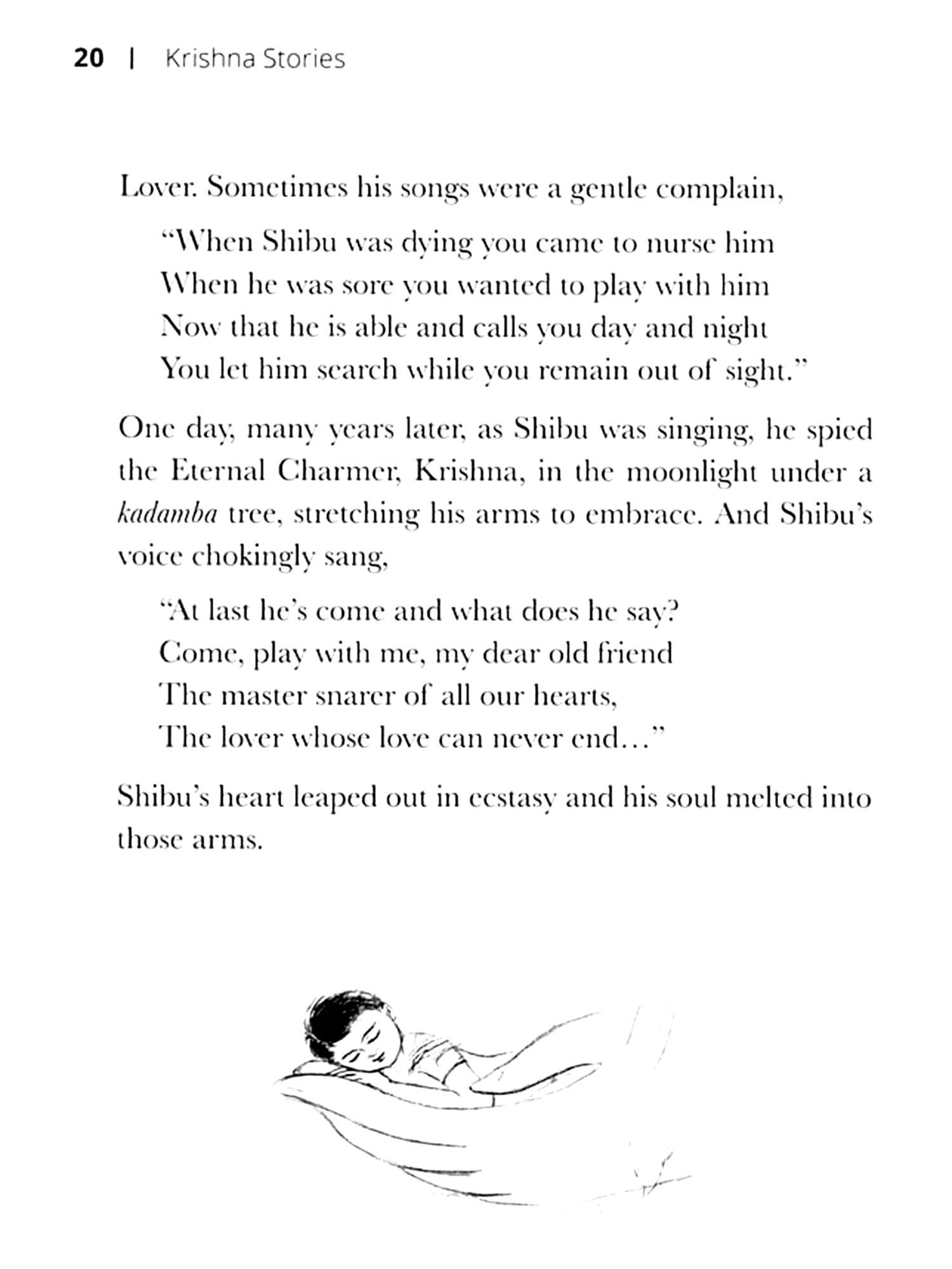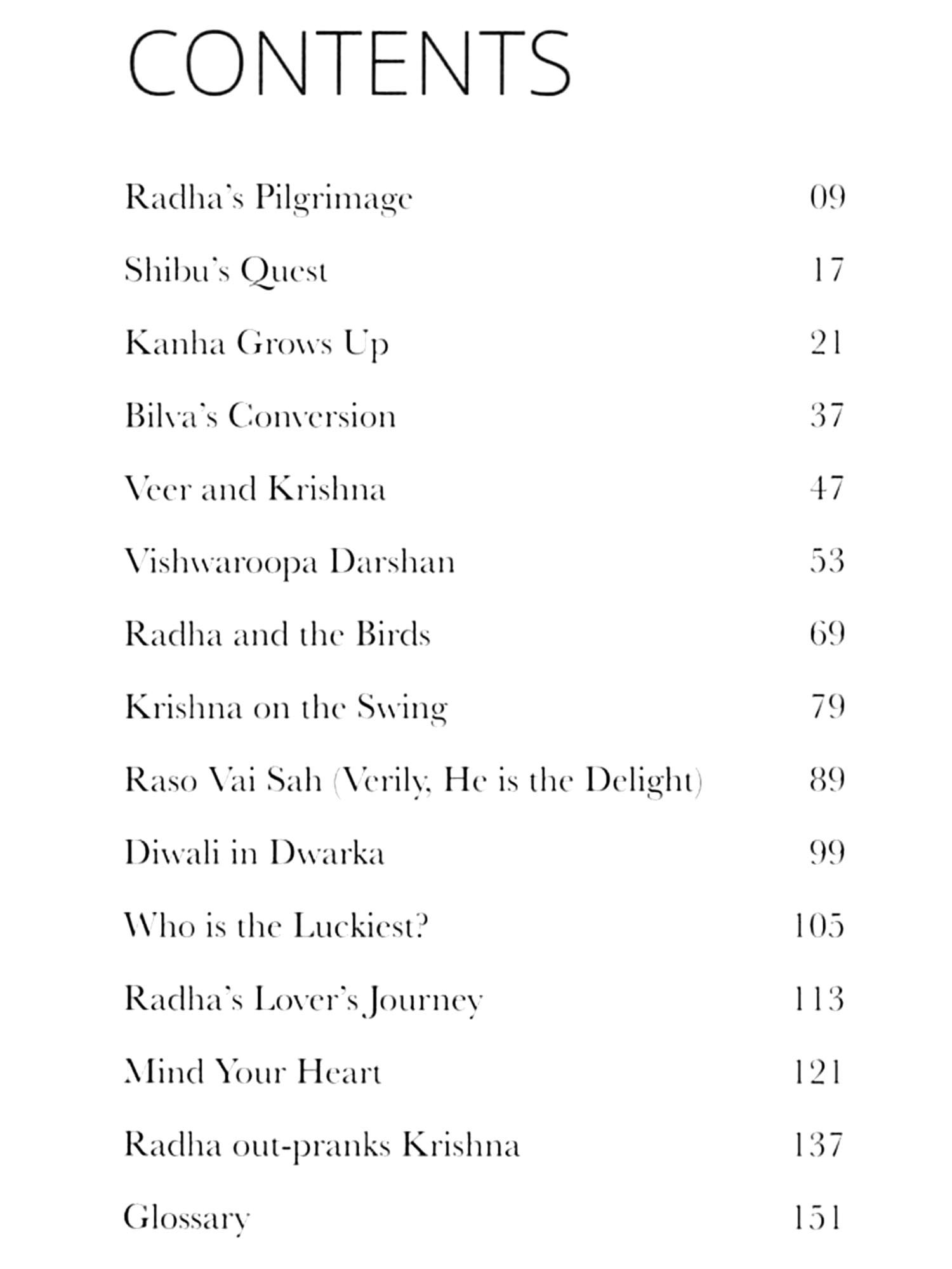 The stories in this collection are inspired by Lord Krishna and his lila of love. Love for his beloved Radha, for his wife Rukmini, for his friend Sudama, for his brother gopals, for his mother Yashoda, for his son Pradyumna, for his protégé Arjuna, for his subjects, for his enemies and devotees, for all of humanity. The relationships he had with the people during his lifetime are the many relationships we have with our fellowmen. What if we see his presence behind the relationships we have now? Will it transform our friendships, will it light us up with the pure flame of his love? Today, when life seems so much more complicated than the idyllic Brindavan of Krishna, is he still relevant? These stories affirm with delight, "Yes, Krishna is relevant, his guidance can be heard, his touch can be felt, his flute can still enchant, one can melt in his loving embrace, one can forget oneself and find one's self newly-made. Such is the miracle of union with the Divine Beloved."
