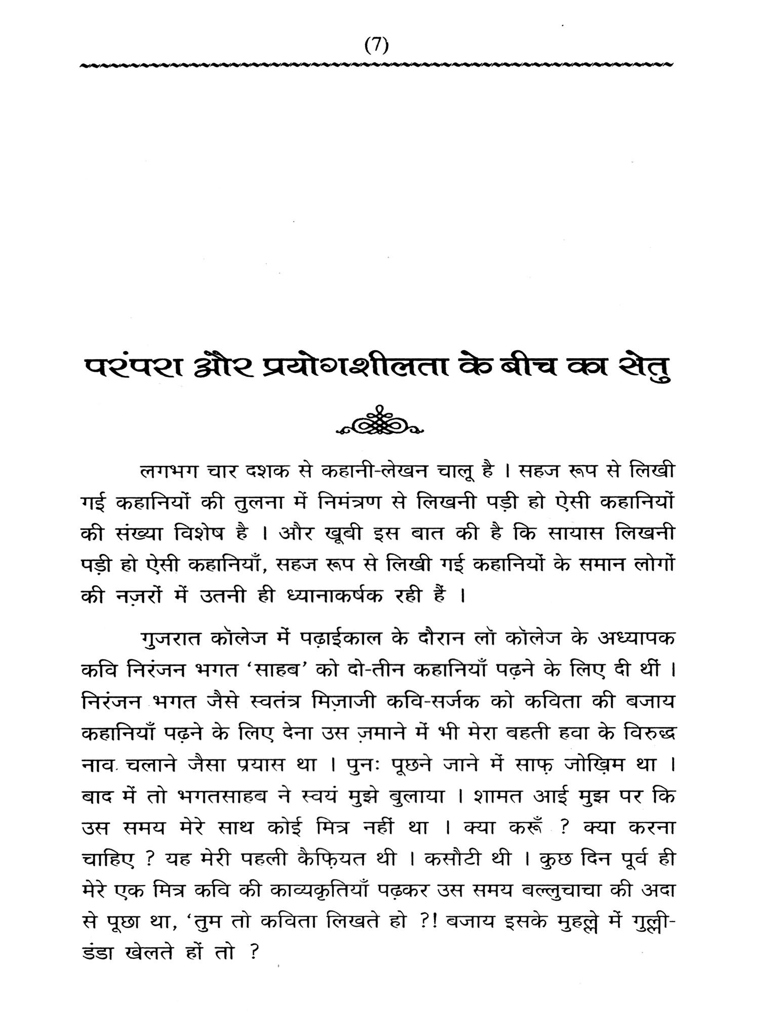 शिष्ट साहित्य के प्रचार-प्रसार के हेतु विभिन्न लोकोपयोगी प्रकाशनों की योजना द्वारा साहित्यजगत में एवं जनसमाज में अकादमी ने अपनी अलग पहचान बना ली है। साहित्य की विभिन्न विधाओं में चयनित कविताएँ, कहानियाँ, निबंध आदि के लगभग बीस से अधिक संकलनों के प्रकाशन और उसी प्रकार ऐसी ही चयन की गई पुस्तकों का अनुवाद करवाकर उसके भी प्रकाशन द्वारा प्रकाशन-क्षेत्र की दुनिया में अकादमी आगे रही है। इतना ही नहीं परन्तु साहित्य पदार्थ के साथ संलग्न सभी लोगों को एवं विद्यालय, उच्च विद्यालय के छात्रों को अध्ययन में शिक्षा में उपयोगी सिद्ध हो इस हेतु से कम मूल्य में शिष्ट सृजनात्मक साहित्य उपलब्ध करवाने के लिए अकादमी का लक्ष्य इसके जरिए चरितार्थ होता है। आशा करता हूँ कि जिस प्रकार अन्य प्रकाशनों का आपने सहर्ष स्वागत किया है उसी भाव से इस प्रकाशन का भी स्वागत करेंगे ।