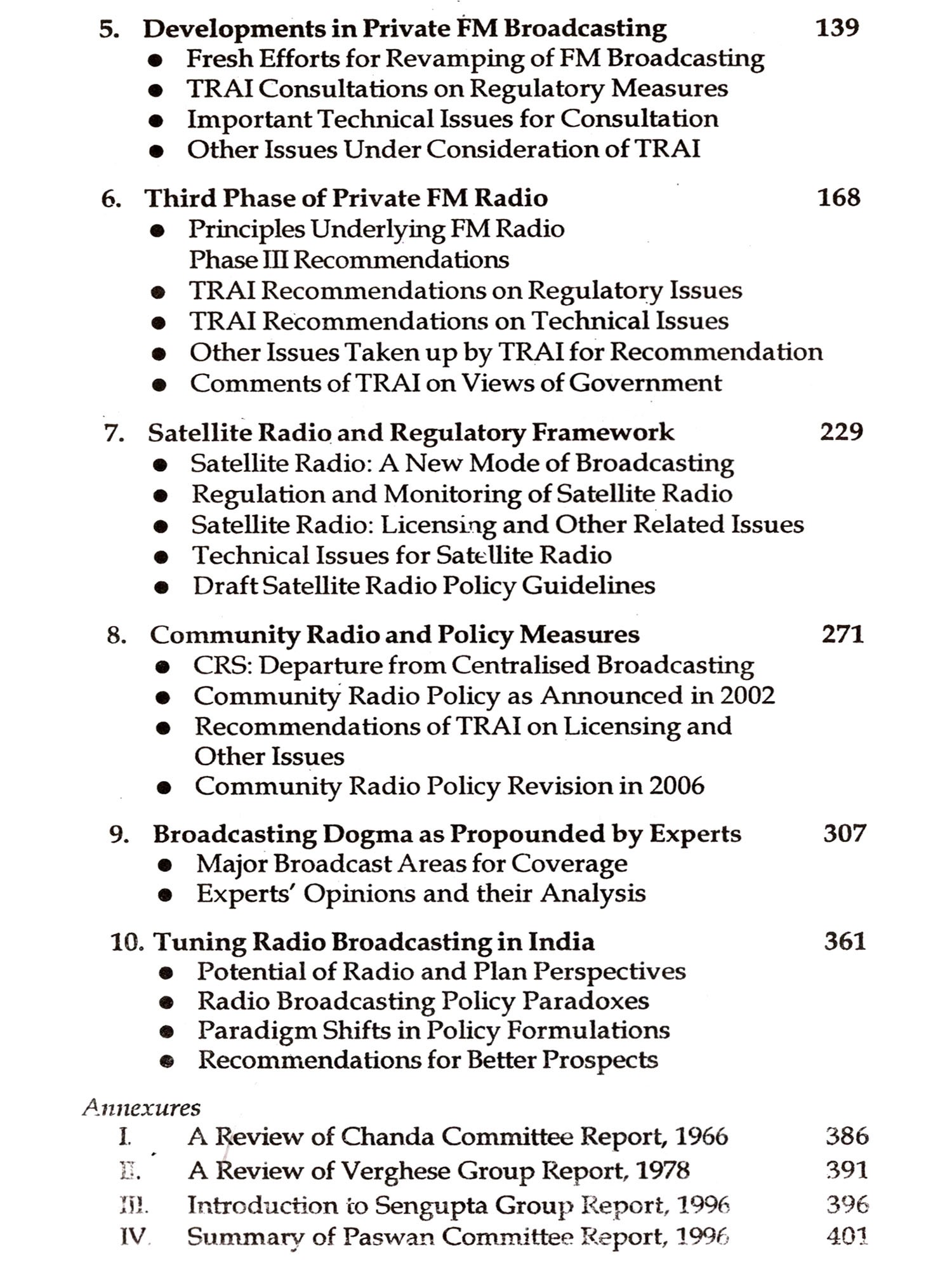 Though the book is focused on mainstream broadcasting, more precisely on private FM radio broadcasting, chapters have been included on community radio broadcasting and satellite radio broadcasting. The regulatory, technical and all other issues have been discussed in detail in the case of all three i.e. private FM radio, community radio and satellite radio.