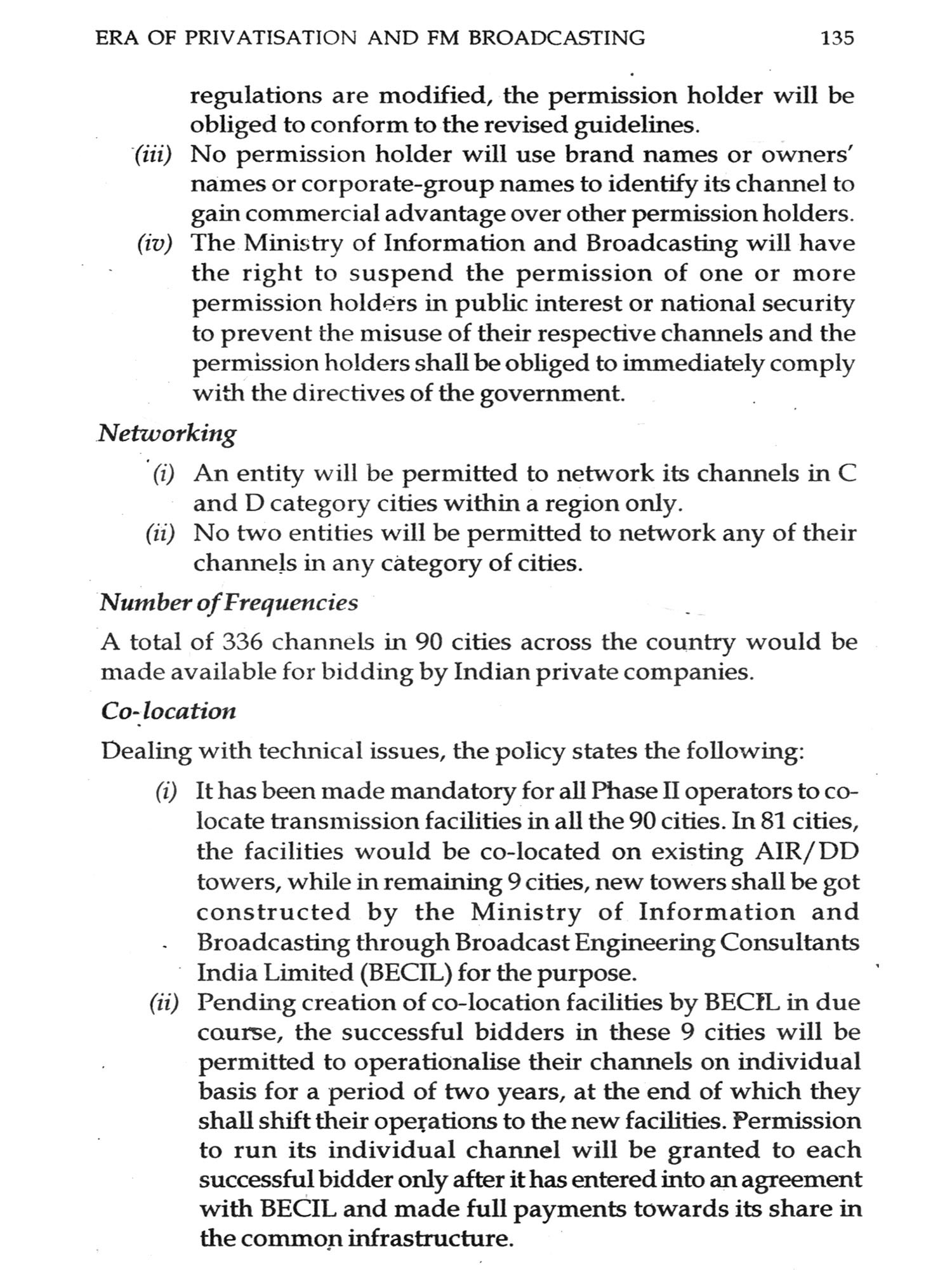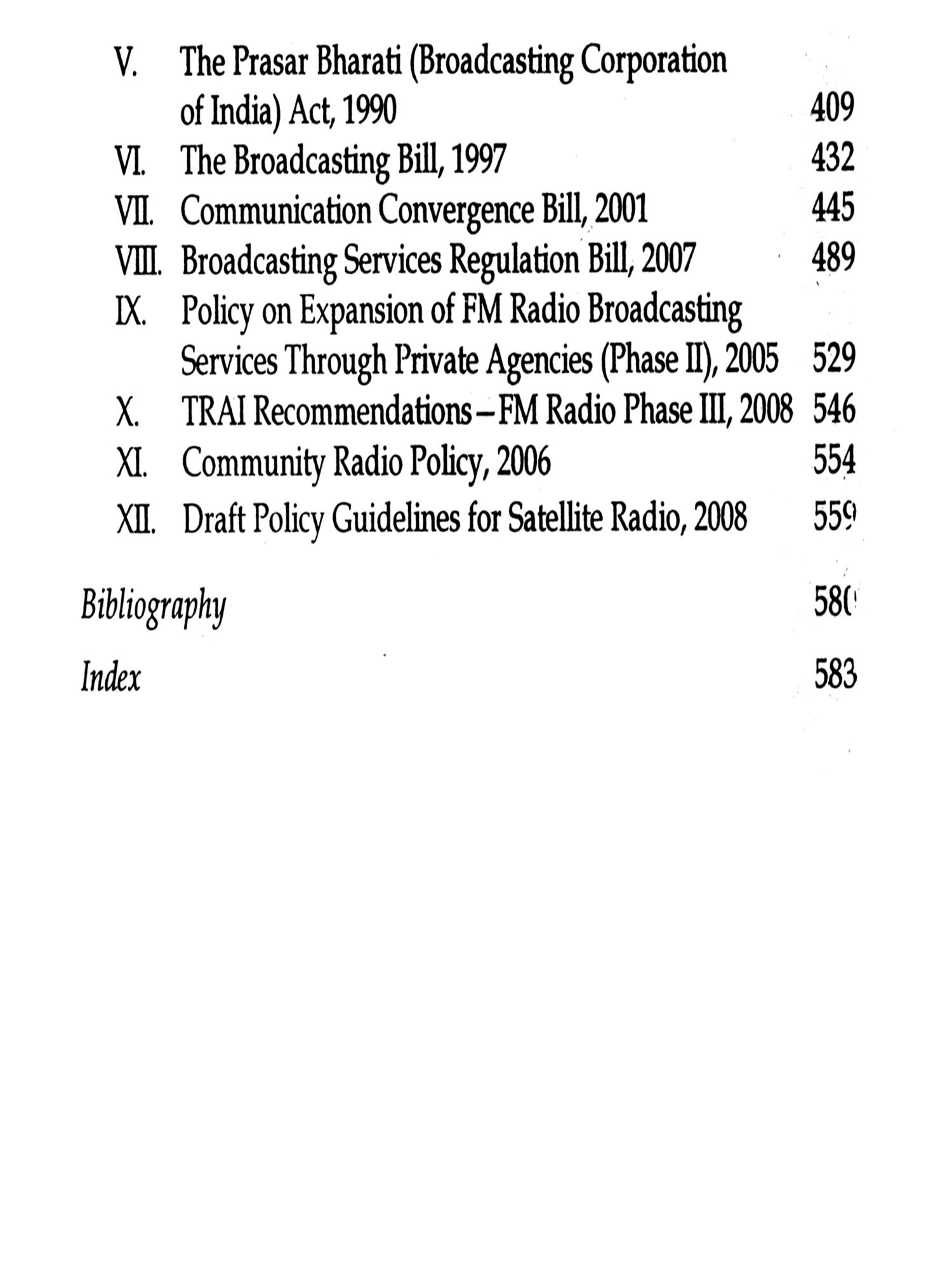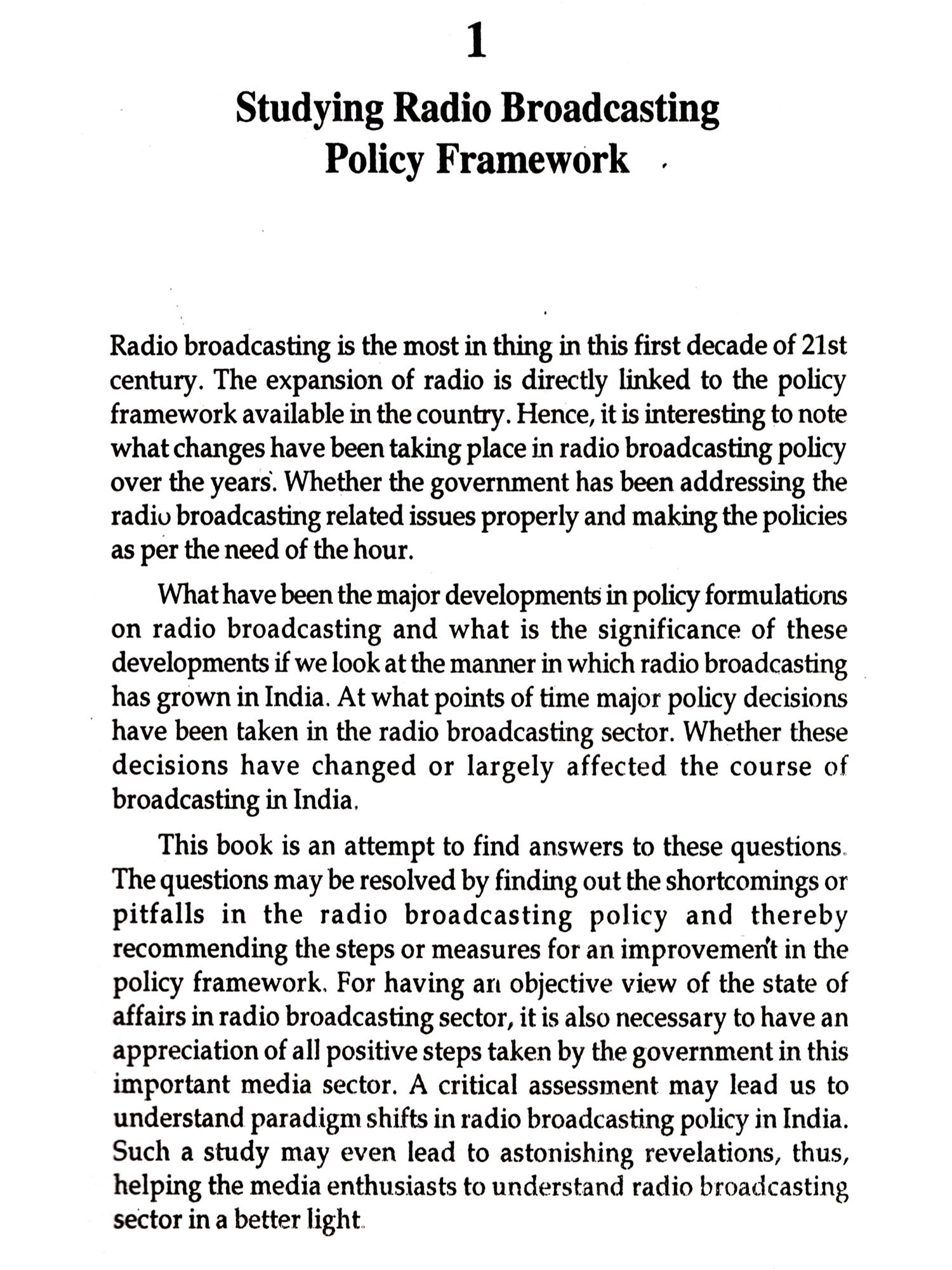 This book tries to apprise you with the policy formulations which covers reports of various committees and groups like Chanda Committee and Verghese Group, legislations like Prasar Bharati Act and Broadcasting Services Regulation Bill, recommendations of TRAI on FM Radio, Community Radio and Satellite Radio, and regulations like Private FM Radio Policy Phase II, Community Radio Policy and Draft Satellite Radio Policy Guidelines. A critical assessment reveals many serious policy paradoxes.