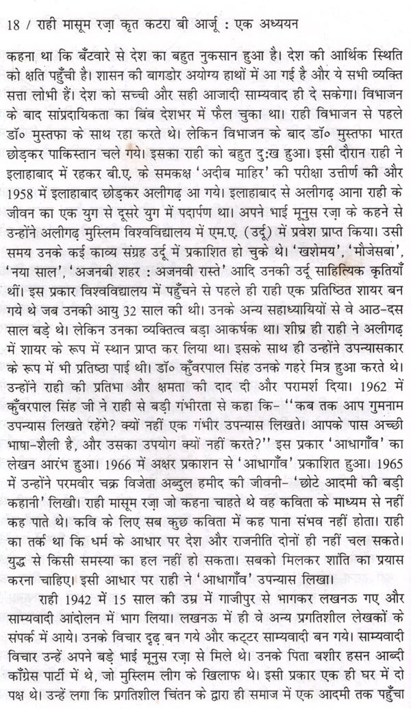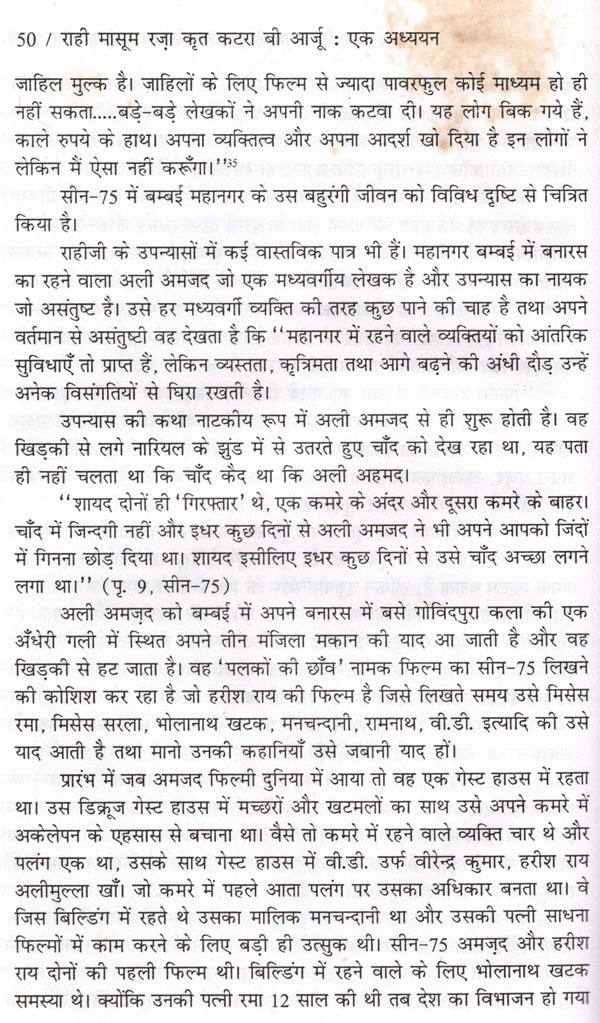 राही मासूम रज़ा कृत कटरा बी आर्जु: एक अध्ययन- Rahi Masoom Raza Krit Katra Bi Aarju: Ek Adhyayan