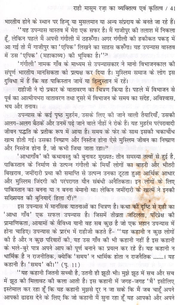 साहित्य को पाठ्यक्रम के संदर्भ में पढ़ना एक बात है और साहित्य की किसी विधा में शोधकार्य करना दूसरी बात है, क्योंकि साहित्यिक अनुसंधान की प्रक्रिया बहुत जटिल है। जब मुझे शोधकार्य करने का अवसर मिला तो आलोचना जगत में जिस रचनाकार को लेकर अधिक कार्य नहीं हुआ ऐसे रचनाकार रही मासूम रजा के 'कटरा बी आजूं' उपन्यास पर मैंने कार्य करना उचित समझा क्योंकि राहीजी की बेबाक लेखनी तथा राजनैतिक घटनाओं का यथार्थ वर्णन उनके उपन्यासों का मुख्य अंश रहा है, जो मुझे काफी प्रभावित करता है।