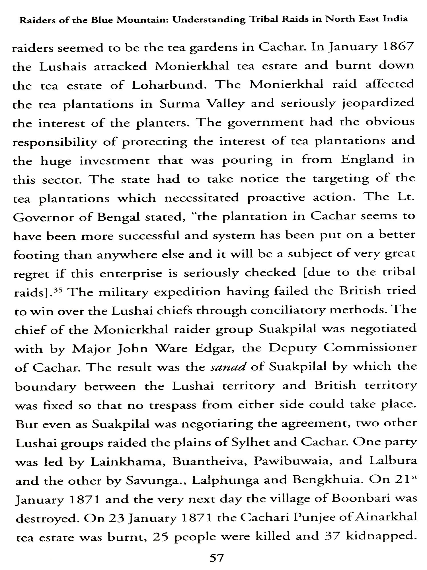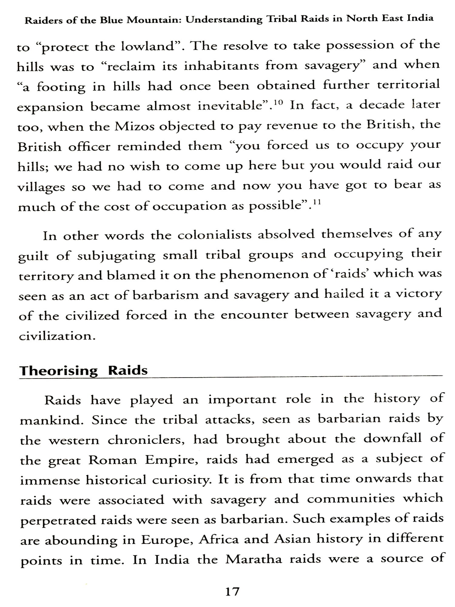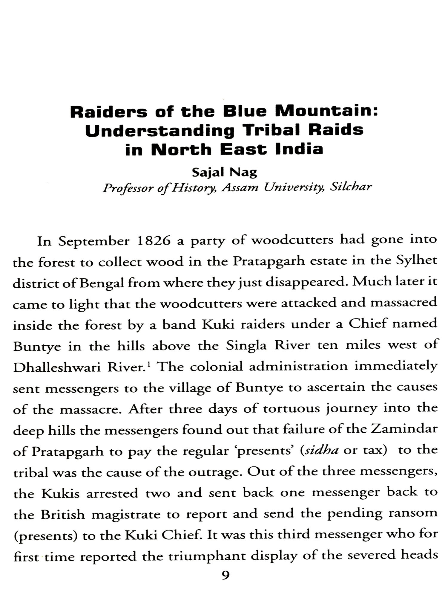 This year's H.K. Barpujari Endowment Lecture delivered by Prof. Sajal Nag on the theme 'Raiding the Colonial State: Understanding Tribal Raids in North-East India' dwells mainly on the recent trends to interpret all anti-colonial movements as some kind of militant nationalism. In this connection one may read Anand Yang's definitive work 'Crime and Criminality in British India'.
