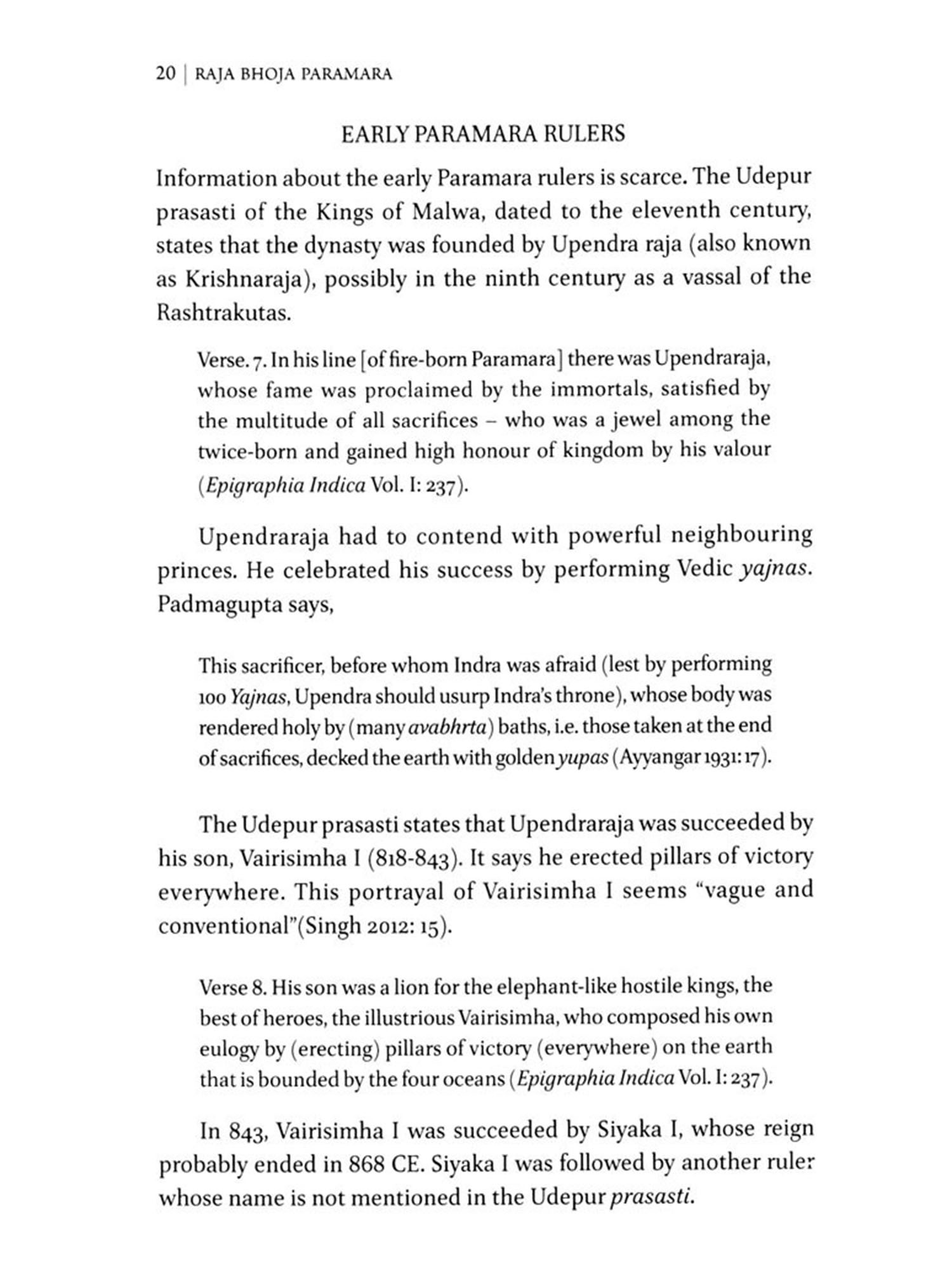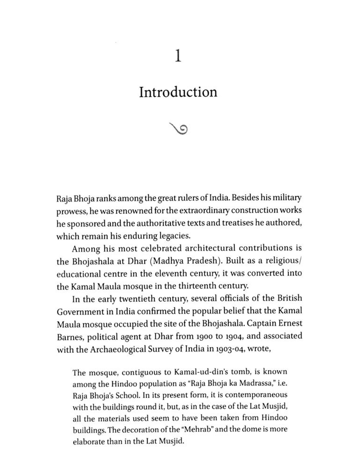 The subject of this book is Raja Bhoja Parmara, the polymath ruler of Malwa in the eleventh century. Besides being a skilled warrior, Raja Bhoja was an accomplished scholar, many of whose texts have come down to us. Ajada, in his commentary on Bhoja's Sarasvati Kanthabharana, states that the king authored eighty-four works. The most well-known of his treatises on art and architecture are Yuktikalpataru and Samaranganasutradhara. Yuktikalpataru deals primarily with architecture, arts, and crafts.
