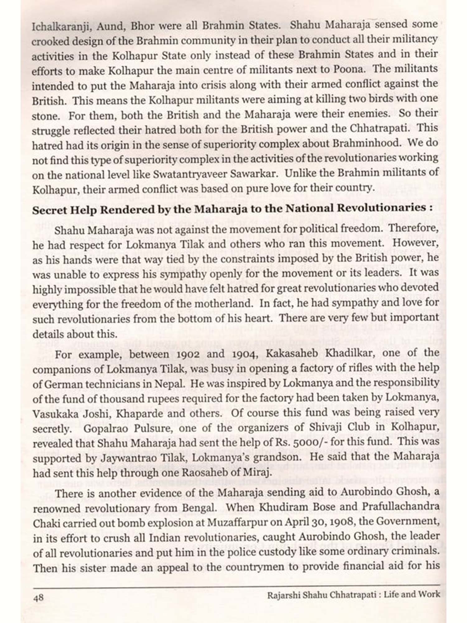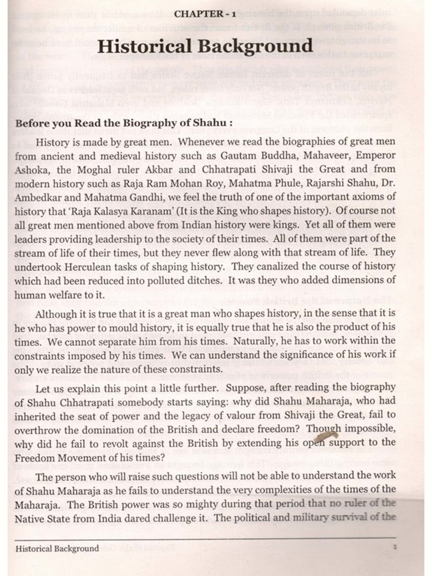 During the meeting organized with regard to this project, some experts made the following suggestions: the size of the biography should be kept small in order to carry Rajarshi Shahu's revolutionary ideas and his inspiring biography to all the sections of the society, the language should be simple and easy, and there should be a separate chapter on what should be learned from the revolutionary schemes implemented, and from the far-reaching decisions taken, by Shahu Maharaja. The readability and impact of this book has been definitely increased because of the justice done by Dr. Jaysingrao Pawar to these suggestions by his accomplished art of writing.