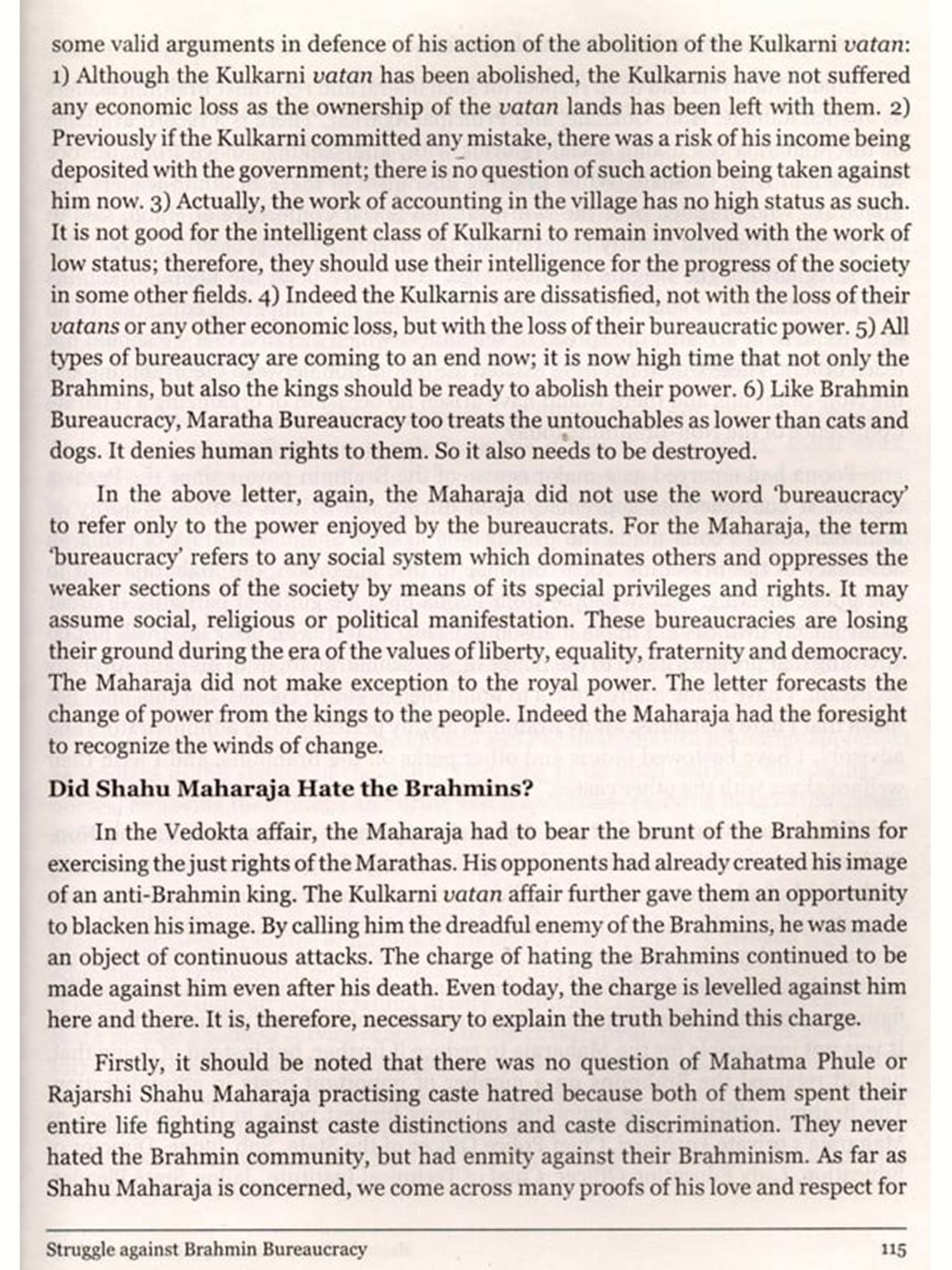 We are astonished when we look at the list of activities implemented by this king in his short span of life by keeping before his eyes the broader objective of social and economic justice and equality. As soon as the name of Rajarshi Shahu Maharaja is taken, a series of extraordinary work starts flashing before our eyes: the Maharaja helped Gangaram Kamble, a Dalit, for opening a hotel and paid a regular visit to that hotel to take tea during the rotten period of such inhuman practices as regarding mere fall of the shadow of an untouchable bringing in desecration; the Maharaja passed for the first time in India the Act prohibiting the inhuman treatment accorded to woman from her family by his opposition to the low status given to woman by the supporters of Brahminism; the Maharaja supported the inter-caste marriage by arranging the marriage of his own sister with the bridegroom from the Holkar (Dhangar) family of Indore without simply preaching the need for the abolition of caste distinctions; the Maharaja gave encouragement to modern agricultural technology by building. the dam at Radhanagari; the Maharaja implemented the Act of Free and Compulsory Primary Education by realizing the importance of education in modern life, so on and so forth.