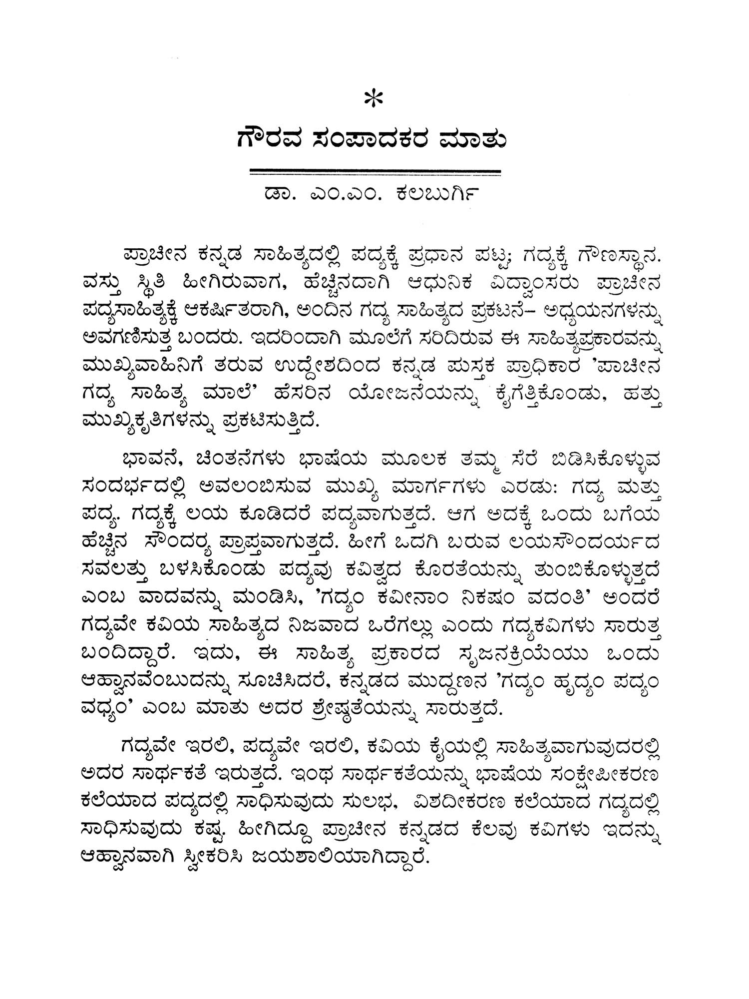 ಪ್ರಾಚೀನ ಕನ್ನಡ ಸಾಹಿತ್ಯಾಧ್ಯಯನದ: ವಿವರಣಾತ್ಮಕ ಲೇಖನಸೂಚಿ- Ancient Kannada Literature (Descriptive Index in Kannada)