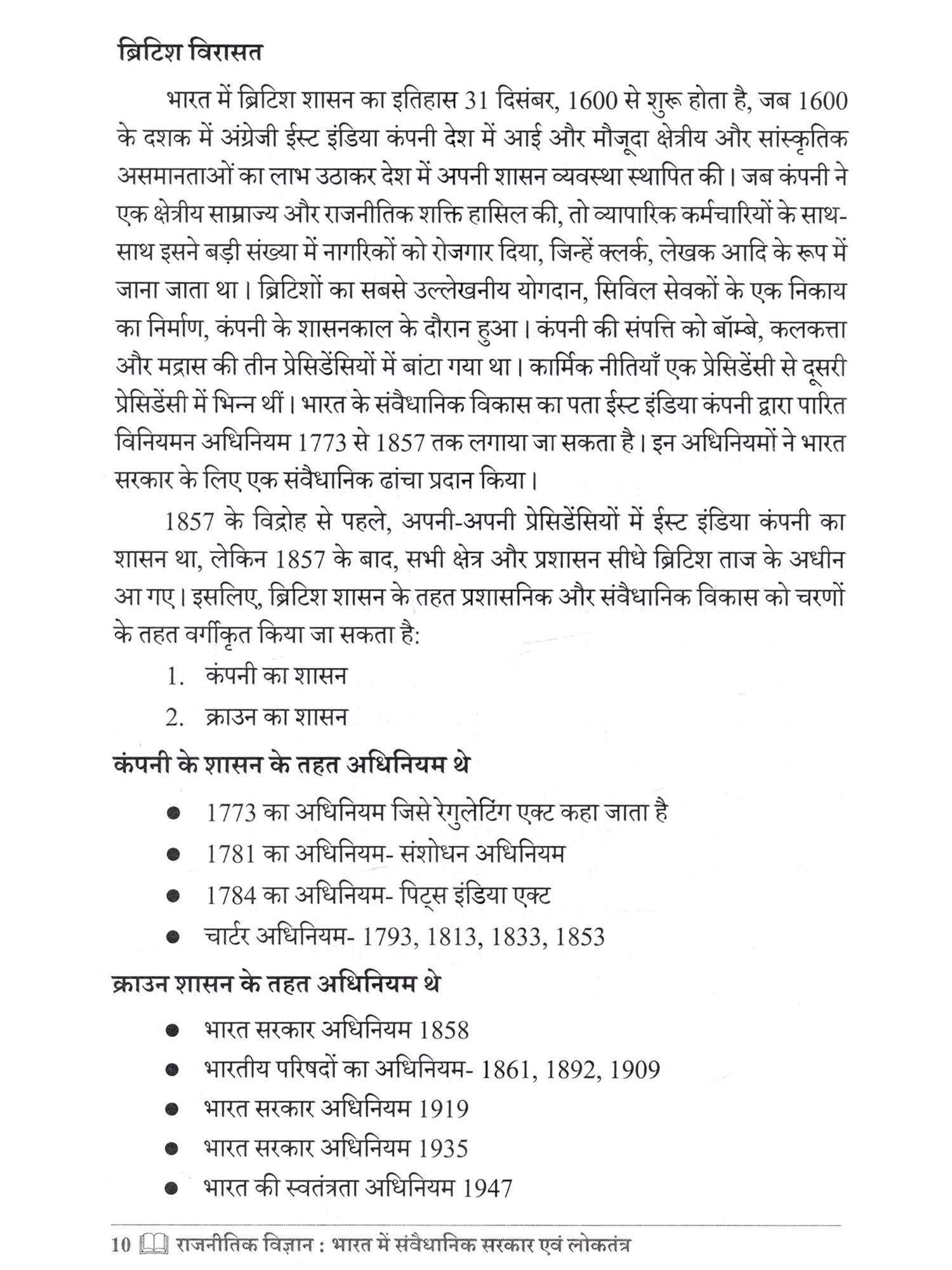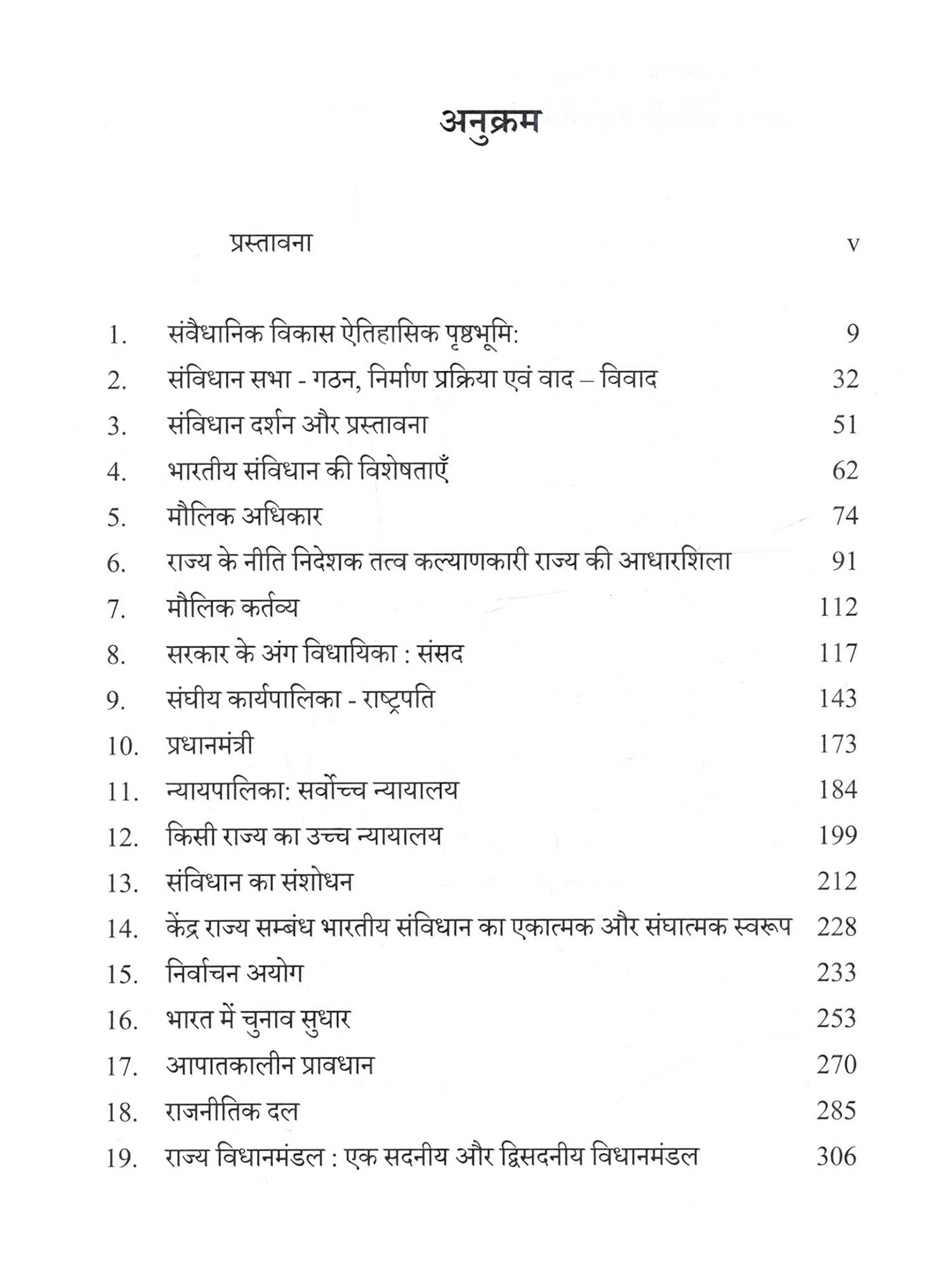 भारतीय संविधान भारतीय राजनीति की आधारशिला है। यह न केवल शासन की रूपरेखा प्रदान करता है बल्कि सिद्धात भी प्रदान करता है। विकास की राह में लोकतंत्र की अहम भूमिका रही है। आजादी के बाद; भारत ने लोकतांत्रिक संसदीय प्रणाली को चुना, जिससे जल्द ही कल्याणकारी नीति और समाजवाद को बढ़ावा मिला। इसी समाजवाद ने लगभग 75 वर्षों तक विकास की दशा और दिशा तय की। लेकिन 1990 तक इसने भारत को ऐसे मोड़ पर ला खड़ा किया कि उसके बाद उदारीकरण, निजीकरण और वैश्वीकरण की नीति अपनाने के अलावा कोई विकल्प नहीं था। आज जब गठबंधन की राजनीति का युग स्थायी हो गया है. कोई सरकार आये, इन नीतियों में आमूल-चूल परिवर्तन कर पाना संभव नहीं है। सरकार के सामने चुनौती लोगों के भौतिक विकास को कायम रखने और अपनी संवैधानिक प्रतिवद्धताओं को साथ लेकर चलने को है। प्रस्तुत पुस्तक में लेखक द्वारा इन्हों अंतर्संबंधों को समझाने का प्रयास किया गया है। किस प्रकार विभिन्न सरकारों ने संवैधानिक प्रावधानों केंद्र राज्य के बीच लोकतांत्रिक संबंध, मौलिक अधिकार, राज्य के नीति निर्देशक सिद्धांतों और वैश्विक लोकतांत्रिक जिम्मेदारियों के बीच समन्वय और संश्लेषण करने का प्रयास किया है। यह भारतीय संविधान की पारगमन स्थितियों की पड़ताल करता है और इसका भारत के संविधान पर प्रभाव पड़ा है। यह पुस्तक हमारे संविधान की पारंपरिक से लोकतांत्रिक की ओर यात्रा की पड़ताल करती है। इन सभी बातों को लेखक ने सटीक विश्लेषण के साथ स्पष्ट किया है