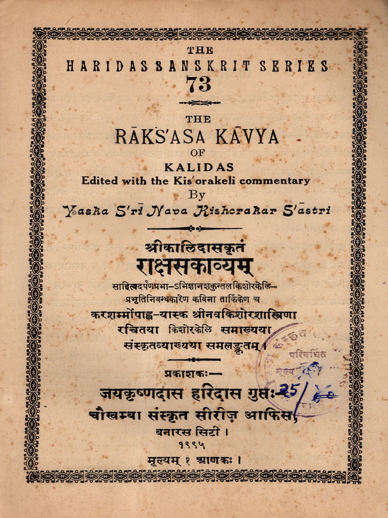 ऋतुसंहार काव्यम् - Ritusamhar Kavyam of Mahakavi Kalidas (An Old and Rare Book)