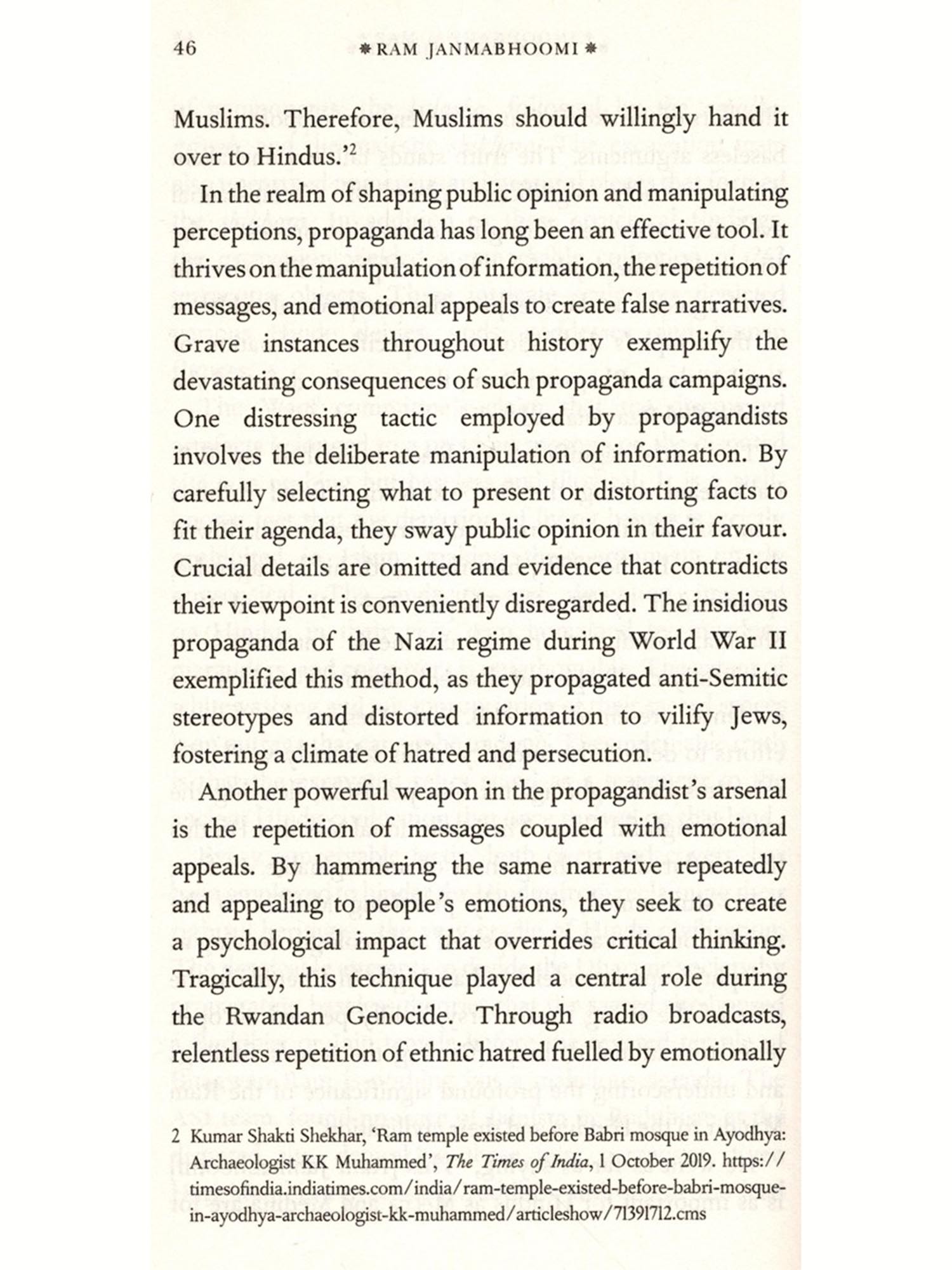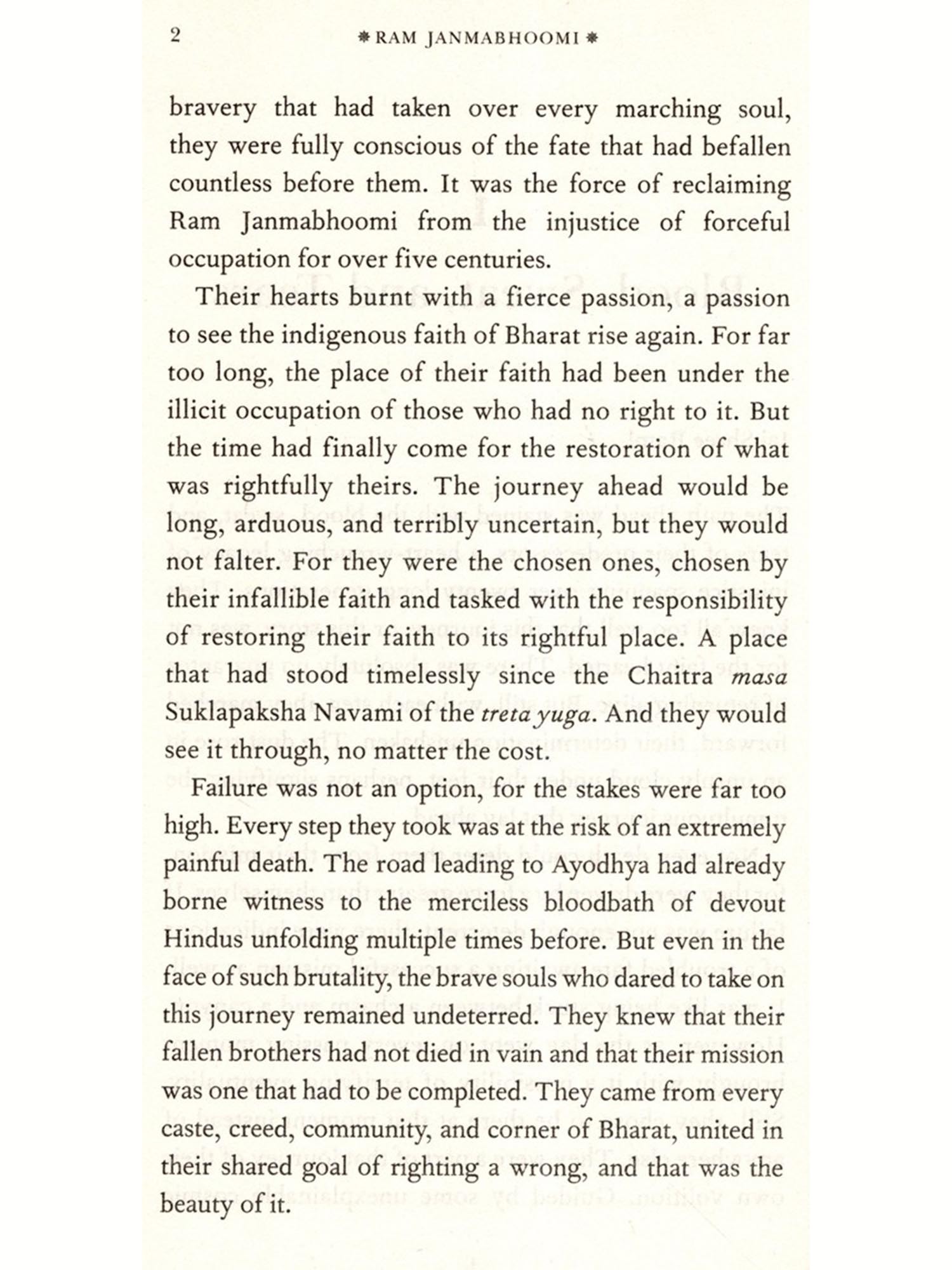 The Ram Janmabhoomi movement stands as a poignant testament to the devastation inflicted upon the roots of Hindu civilization and the arduous battle to reclaim it. In an era dominated by weaponized narratives, where the perpetrators of atrocities are romanticized as victims and the victims are crowned as oppressors, this book reminds of the facts and the inconvenient truths of the blood, sweat and tears that many Hindus shed in fighting the good fight. It is a call to ensure that every Hindu born in an age, removed from those trials and tribulations, never forgets the sacrifices made by those who went before them. For if we forget, we are complicit in normalizing the obliteration of our great civilization.
