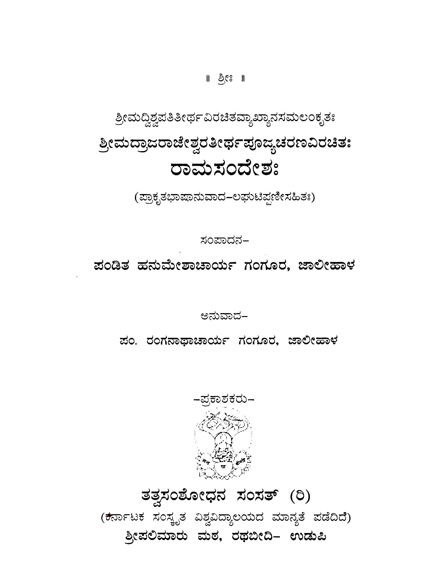 ಶ್ರೀ ಗೋವಿಂದನಾಮ, ಕೇಶವ ನಾಮ ರಾಮನಾಮ, ಮಧ್ವನಾಮ: The Name of Sri Govinda, The Name of Kesava, The Name of Rama, The Name of Madhva (Kannada)