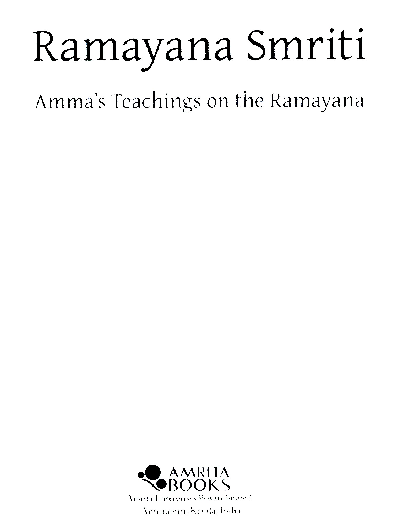 The Rāmāyaņa Smriti contains a concise collec-tion of Amma's Rāmāyaņa messages given as part of the Ramayana month observances. Amma looks at the Rāmāyana's message against the background of today's times. It will inspire us and give us the strength to move forward on the path of dharma without faltering.