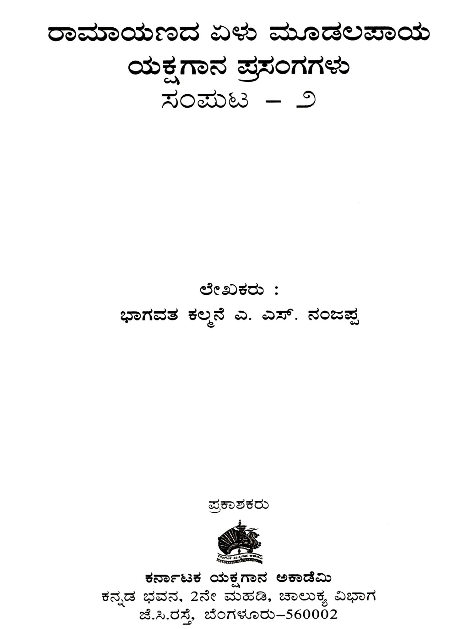 ರಾಮಾಯಣದ ಏಳು ಮೂಡಲಪಾಯ ಯಕ್ಷಗಾನ ಪ್ರಸಂಗಗಳು: Ramayanada Yelu Mudalapaya Yakshagana Prasanggalu in Kannada (Vol-2)