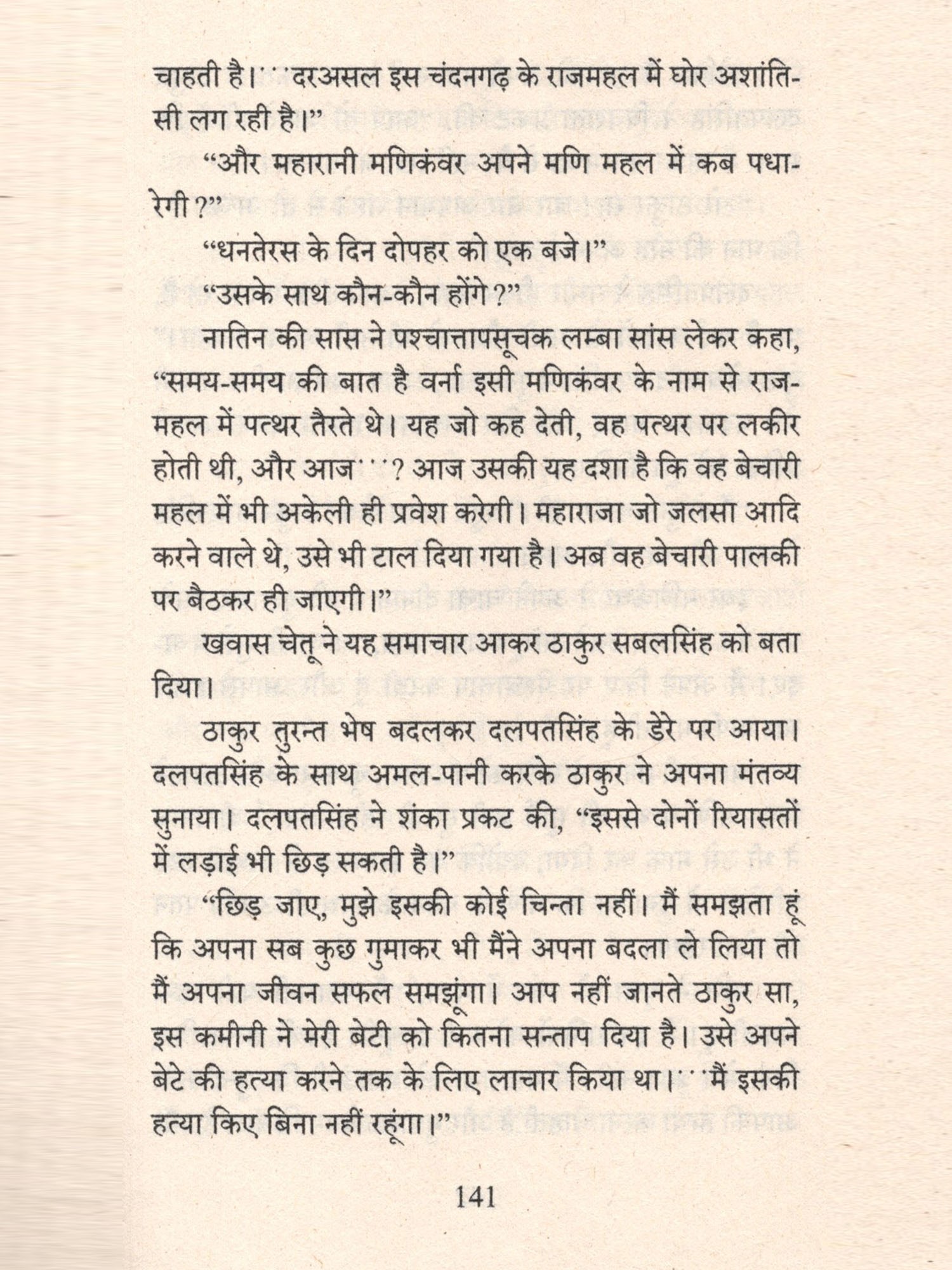 राजस्थान की भूतपूर्व रियासतों के राजाओं-महाराजाओं के हरमों के हाल तो बहुत लिखे जा चुके हैं, परंतु रानियों और महारानियों की कामुकता, कुचक्रों तथा साज़िशों की लोमहर्षक और उत्तेजक रोचक घटनाओं से भरपूर यह उपन्यास अपनी तरह का पहला उपन्यास है|
