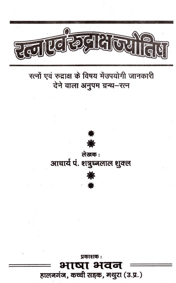 विभिन्न आभूषणों के संयोग से रत्नालंकृत होकर सोन्दर्य वृद्धि करना-मानव-जाति का चिर-काल से प्रिय-व्यसन रहा है। उन्हीं रत्नों को यदि 'शास्त्रीय विधि' से धारण किया जाय, तो शारीरिक सौन्दर्य वृद्धि के साथ ही, अन्य अनेक भौतिक-लाभ भी प्राप्त होते हैं। चमत्कारपूर्ण रत्नों एवं रुद्राक्ष के धारण करने का "शास्त्रीय विधान" बताने वाला अनुपम ग्रन्थ ।