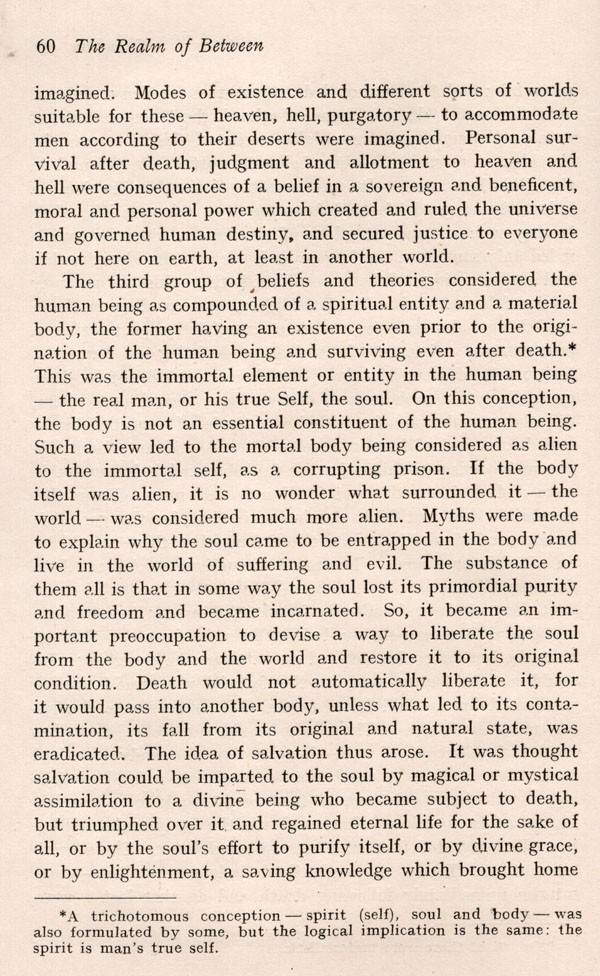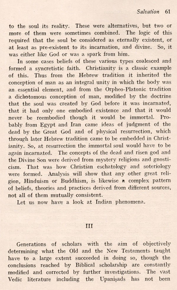 The first chapter deals with man's condition: suffering, evanescence and finitude; and the second considers possible ways of escaping this condition. A god deal of suffering could be eradicated by radically transforming society through concerted rational human action. Salvation is the experience with certitude of peace, security, and contentment. We are saved by the meaning of our thought and acts and by the sympathy and compassion we feel and evoke.