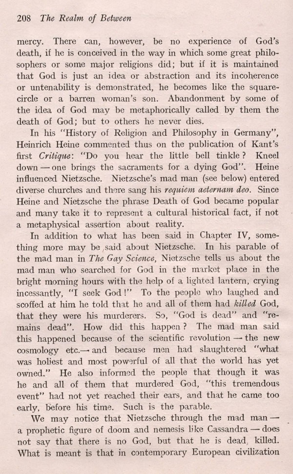 This book is mainly about the realm between the transience of things and the Truth of things, the middle state between What-is and the Holy.