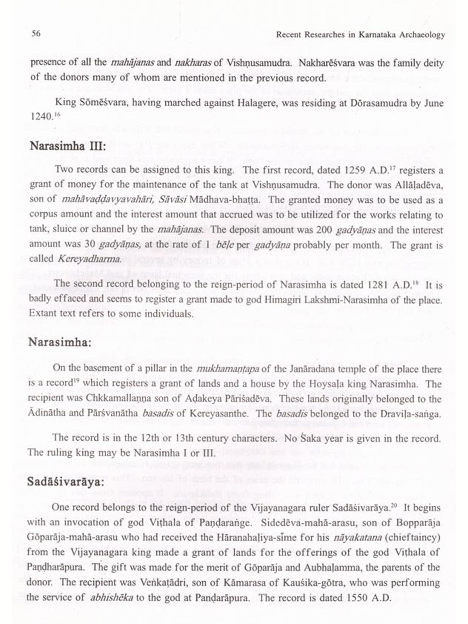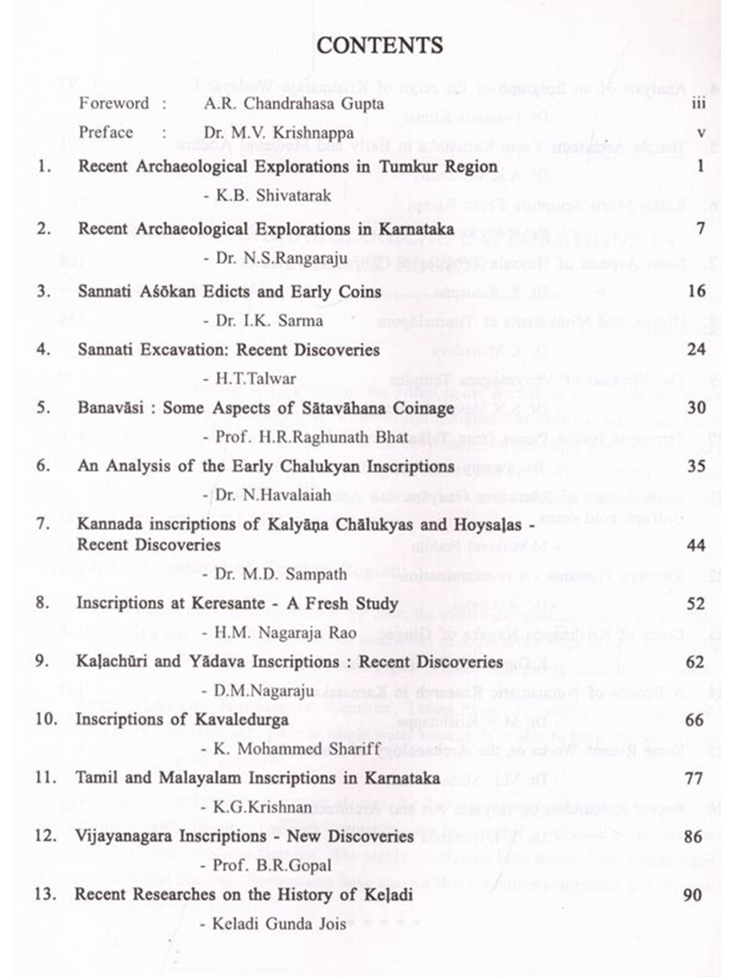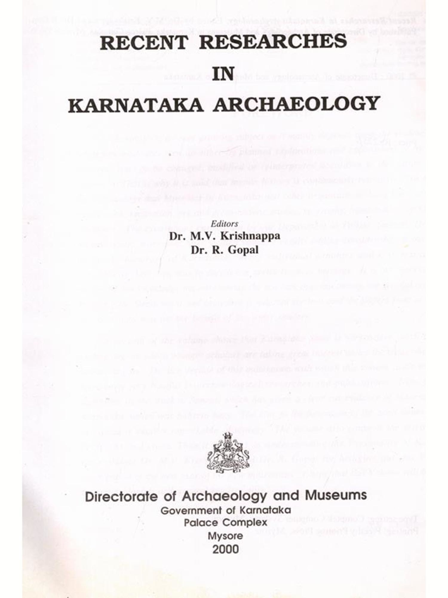 Archaeology is an ever growing subject as it mainly depends upon the evidences. As and when new evidences turn up either by planned explorations and excavations or by chance the concepts have to be changed, modified or reinterpreted according to the nature of the new evidence. That is why it is said that human history is continuously rewritten. The Department of Archaeology and Museums in Karnataka and other organisations have been very active in exploration, excavation, pre and proto-historic studies, epigraphy, numismatics, architecture and sculpture. The excavations carried out by our Department at Talkad, Sannati, Heggadehalli, Banavasi and other sites have yielded valuable results adding considerably to our knowledge of the Archaeology of Karnataka. Many individual scholars and Universities are also contributing their own mite to enrich our archaeological heritage. It is our sincere endeavour to spread this knowledge not only among the scholars but also among the general readers. With this view the Department had organised a national seminar and the papers read at the seminar are published now for the benefit of the wider readers.