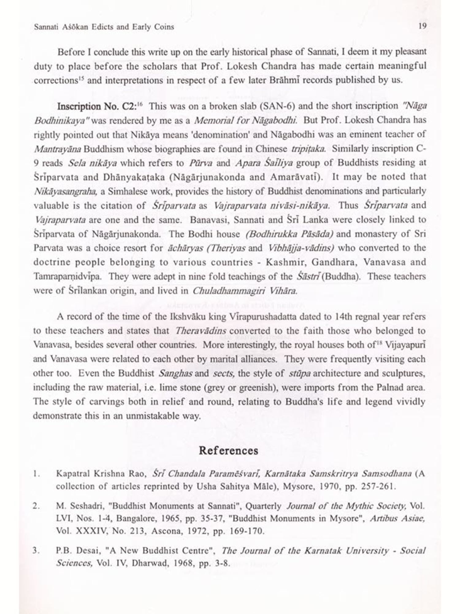 There are two papers on pre and proto historic archaeology; early historic archaeology is represented by three essays; eight papers deal with epigraphy; five papers are devoted to numismatics; others deal with architecture, sculpture and other aspects; one or two articles have now been added. Thus the volume under reference gives a fairly good picture of the progress of archaeology during the last decade of the last century. I thank all the contributors for their research papers.