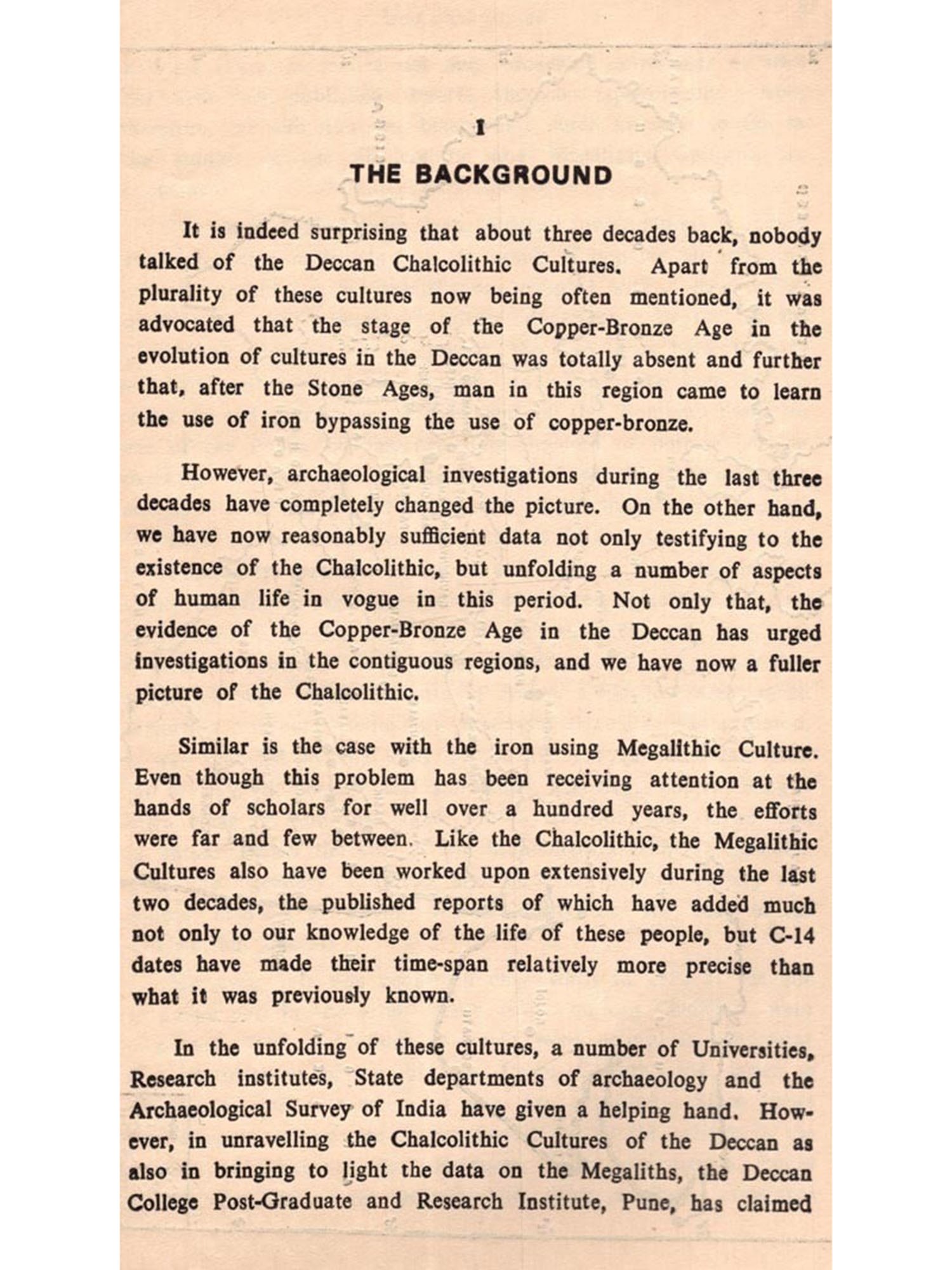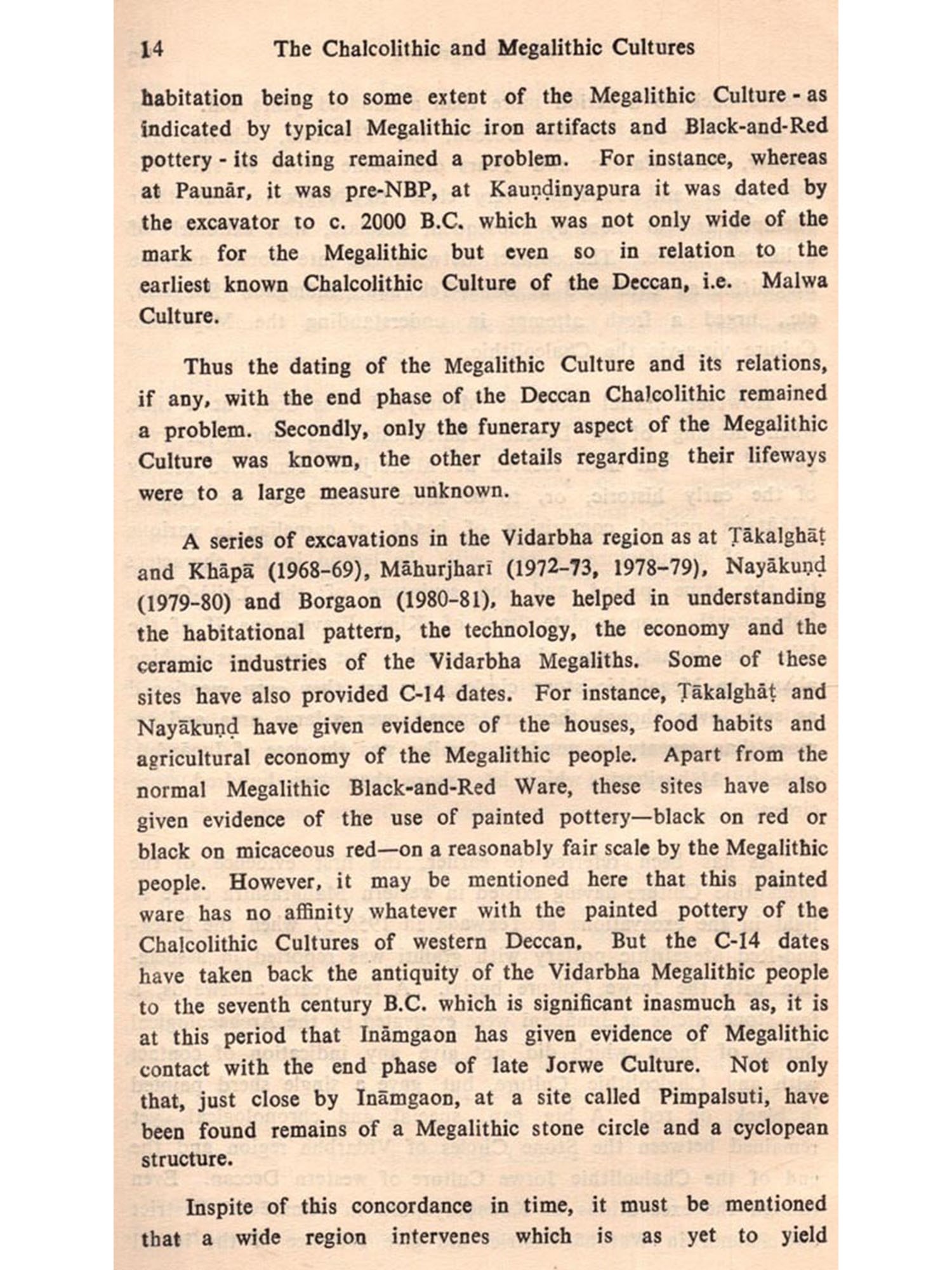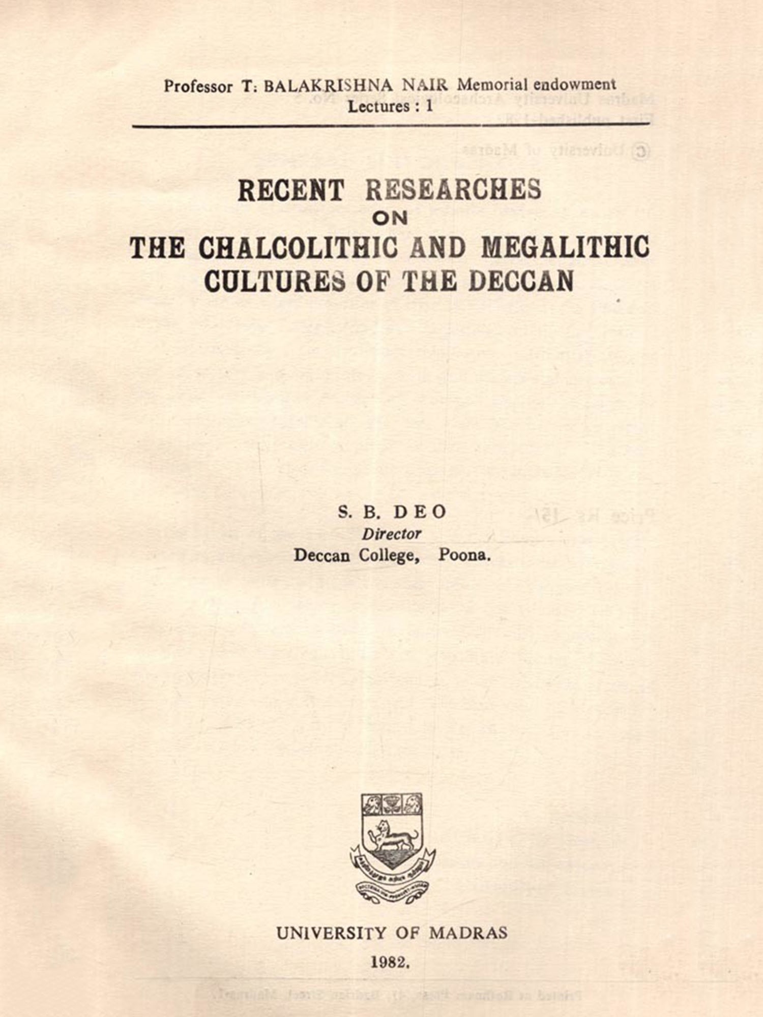 The following three lectures were given on 4th, 5th and 6th February, 1981 as the Late Prof. T. Balakrishna Nair Memorial Endowment Lectures at the Madras University. During the last three decades, significant discoveries have been made regarding the Chalcolithic and the Megalithic Cultures of penin-sular India, and it was thought proper to bring together and present this data to the world of scholars. Prof. T. Balakrishna Nair Memorial Lectureship offered this opportunity. In a large measure the credit of these discoveries goes to the Deccan College Research Institute, Pune. The first lecture takes a review of the work done so far and the nature of new data or new approach involed in each excavation. The second spells out the cultural personality of the Chalcolithic habitations and the last that of the Megaliths. There is a short resume which focuses the attention of scholars on the problem which need solution. I am indeed grateful to the authorities of the Madras University for inviting me to deliver these lectures. To Prof. K. V. Raman. Head of the Dept. of Ancient History and Archaeology. Madras University, I am beholden for his manifold courtesies. I also thank the Rathnam Press, Madras-1, for printing this monograph as carefully as possible. Last but not the least, I am thankful to all my colleagues in my Department and scholars from the Archaeological Survey of India and the Universities for permitting me to draw upon their researches.