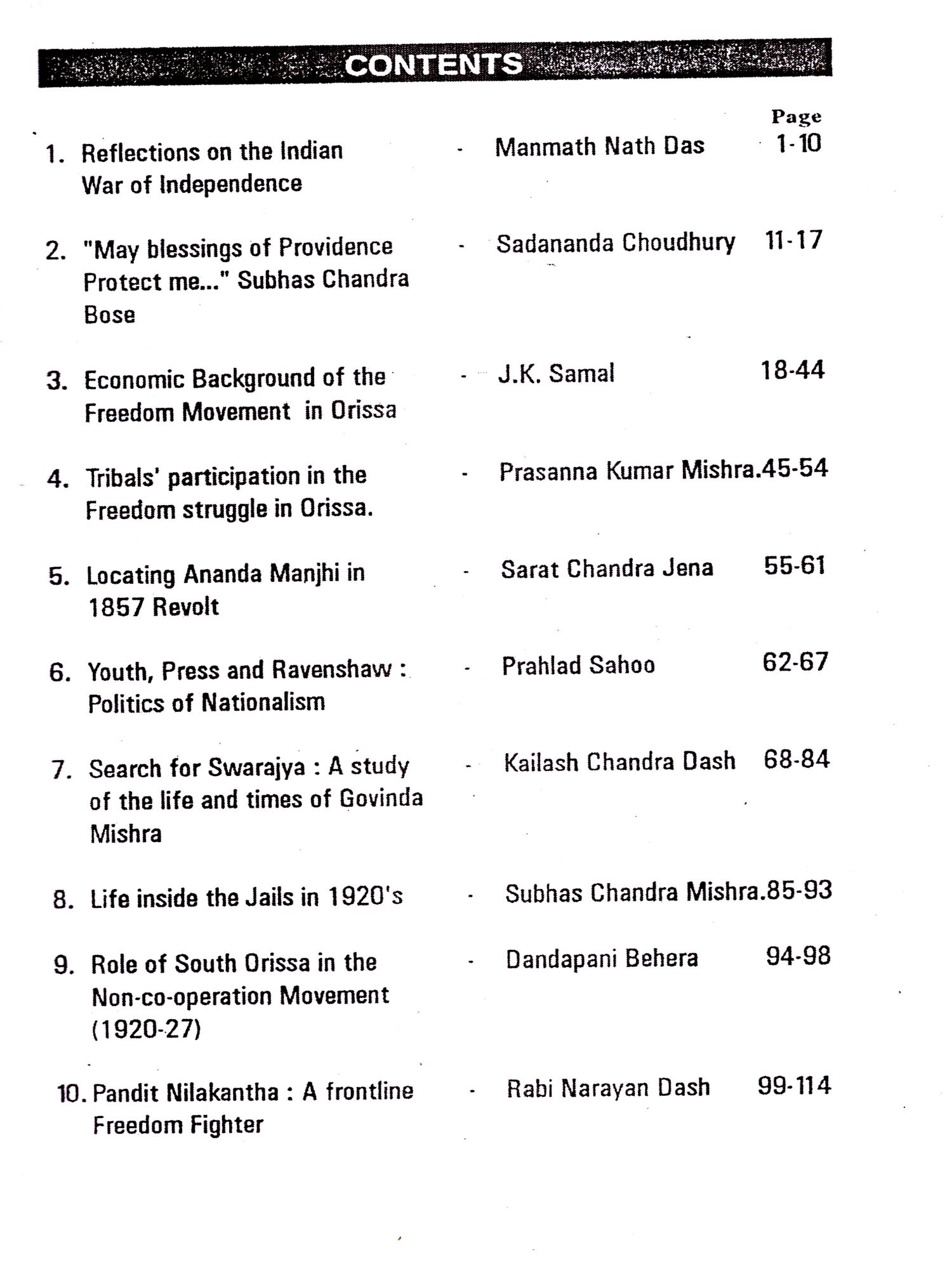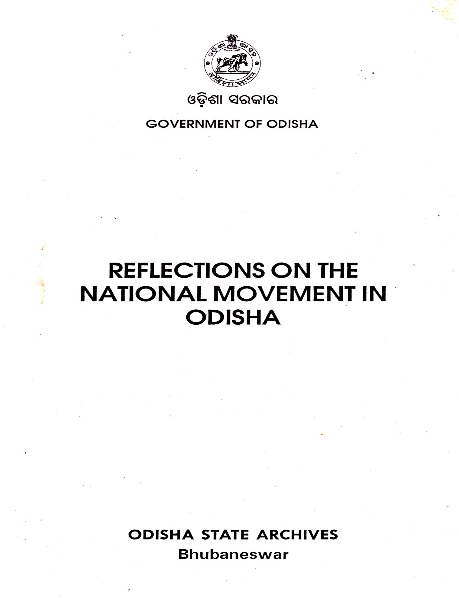 This collection of articles captioned "Reflections on the National Movement in orissa" published by Orissa State Archives is unique in the sense that it has an original approach to this subject based on archival records, to a large extent.