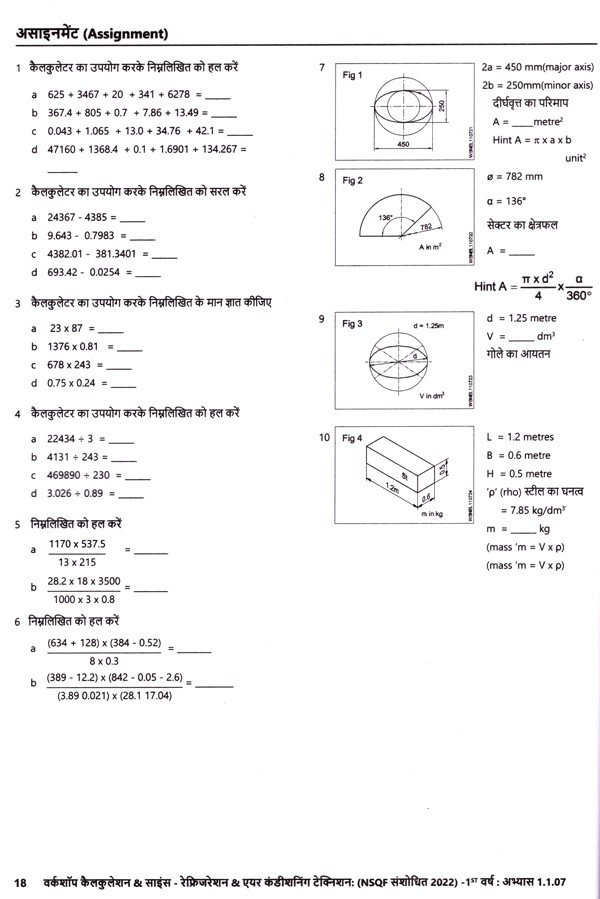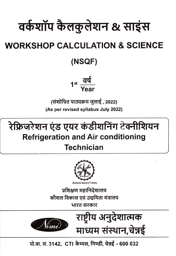 रेफ्रिजरेशन एवं एयर कंडीशनिंग टेक्नीशियन: Refrigeration and Air Conditioning Technician- Workshop Calculation and Science (NSQF 2nd, Year,As Per Revised Syllabus July 2022-1200 hrs)