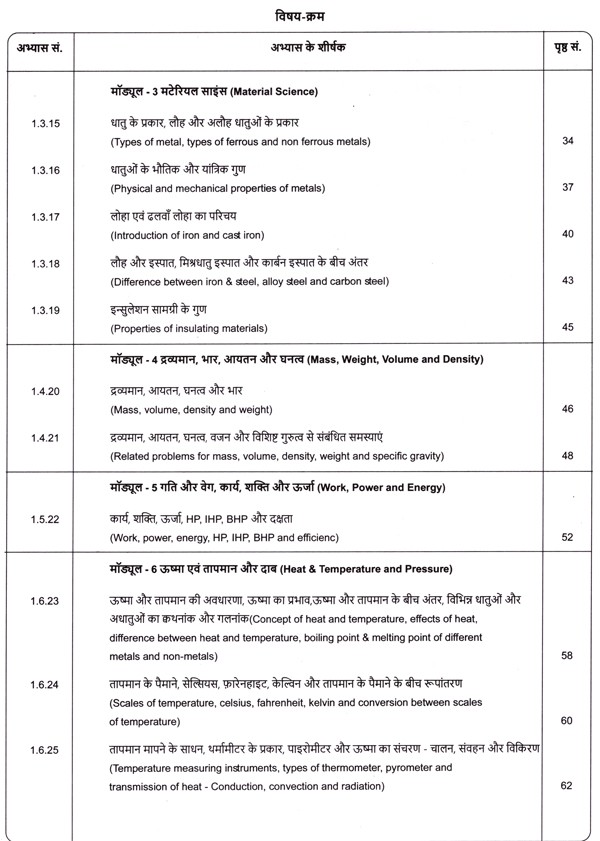 मैकेनिक डीजल & मैकेनिक ट्रेक्टर: Mechanic Diesel and Mechanic Tractor (Workshop Calculation and Science, NSQF 1st Year,As Per Revised Syllabus July 2022-1200 hrs)