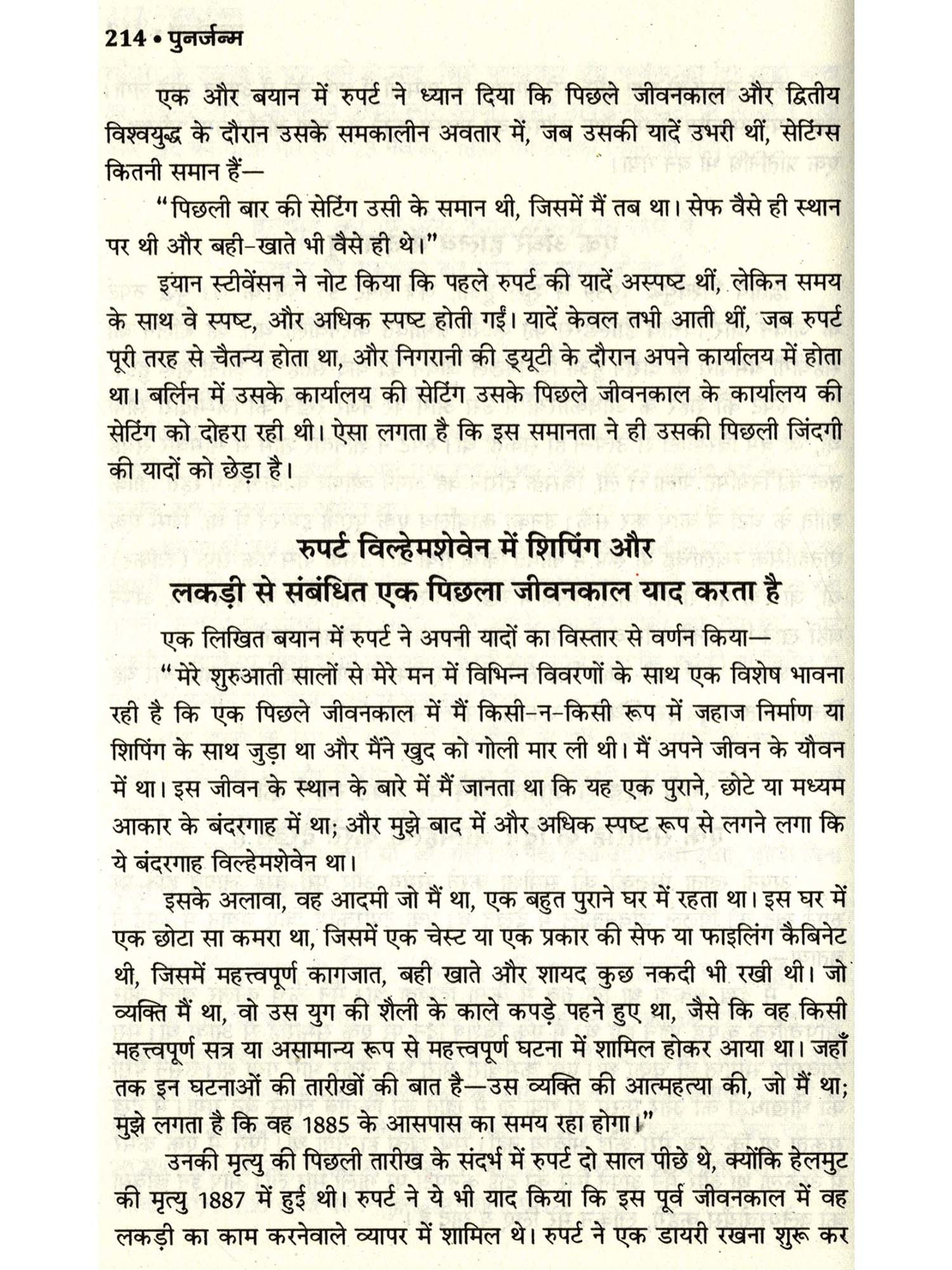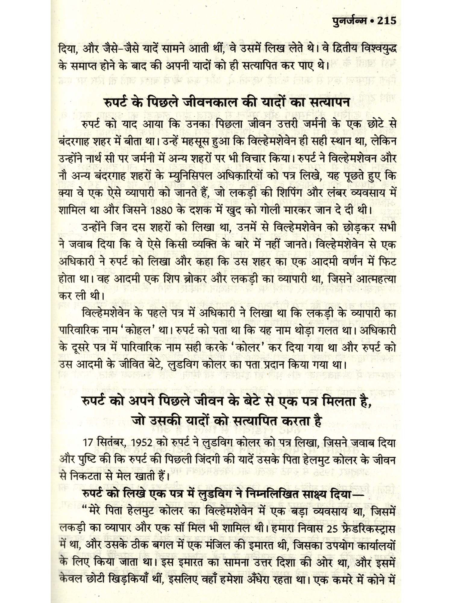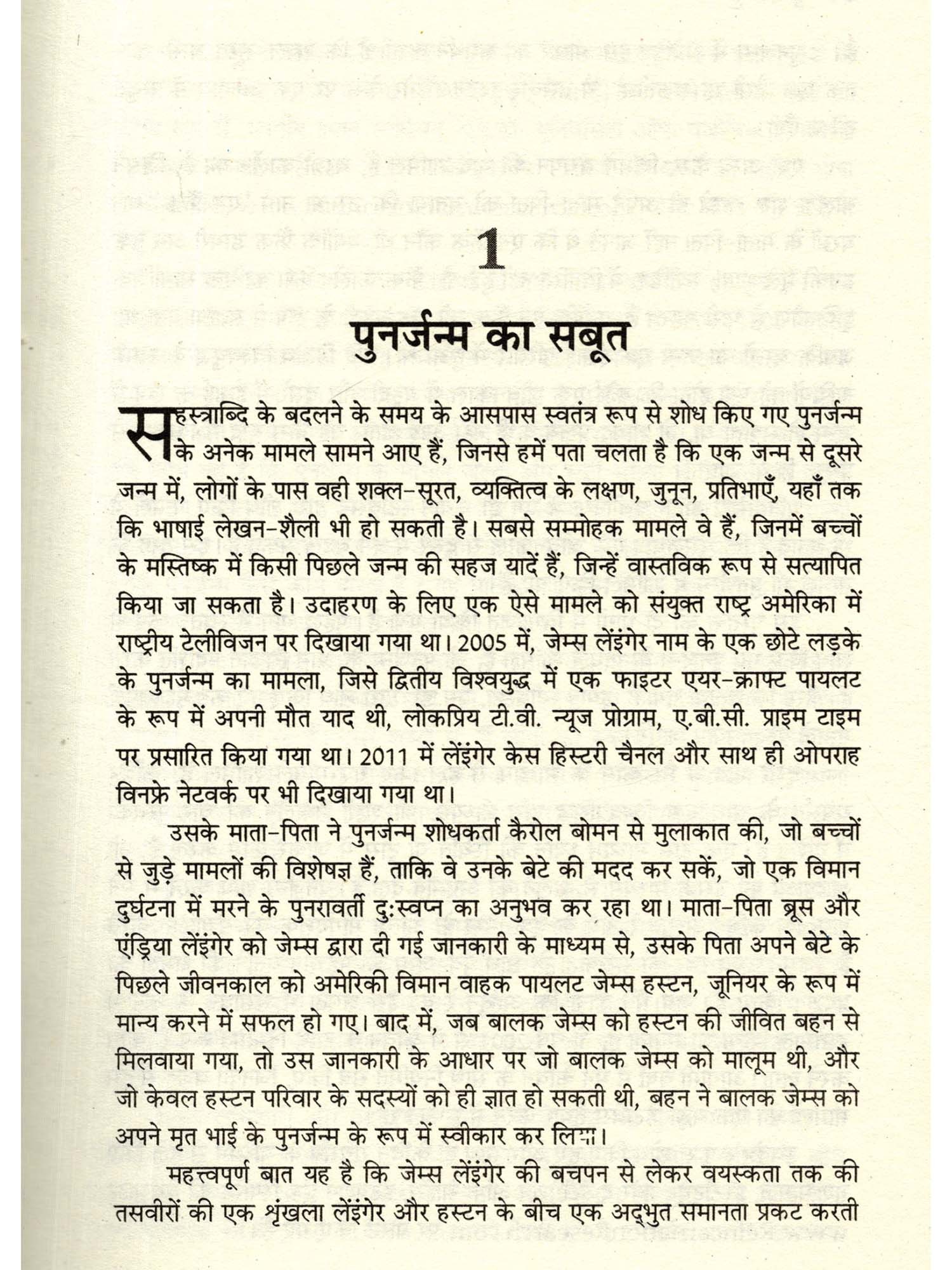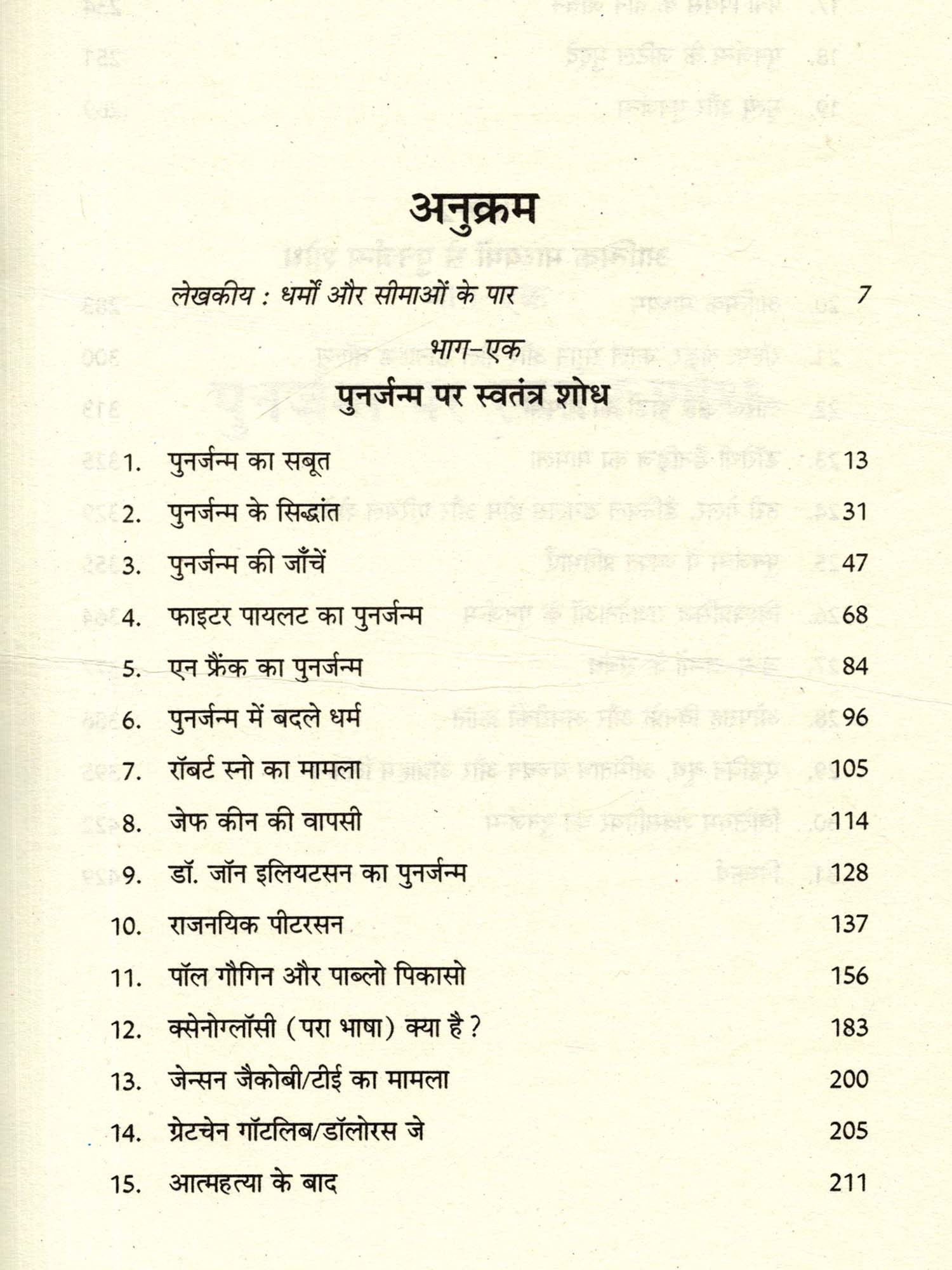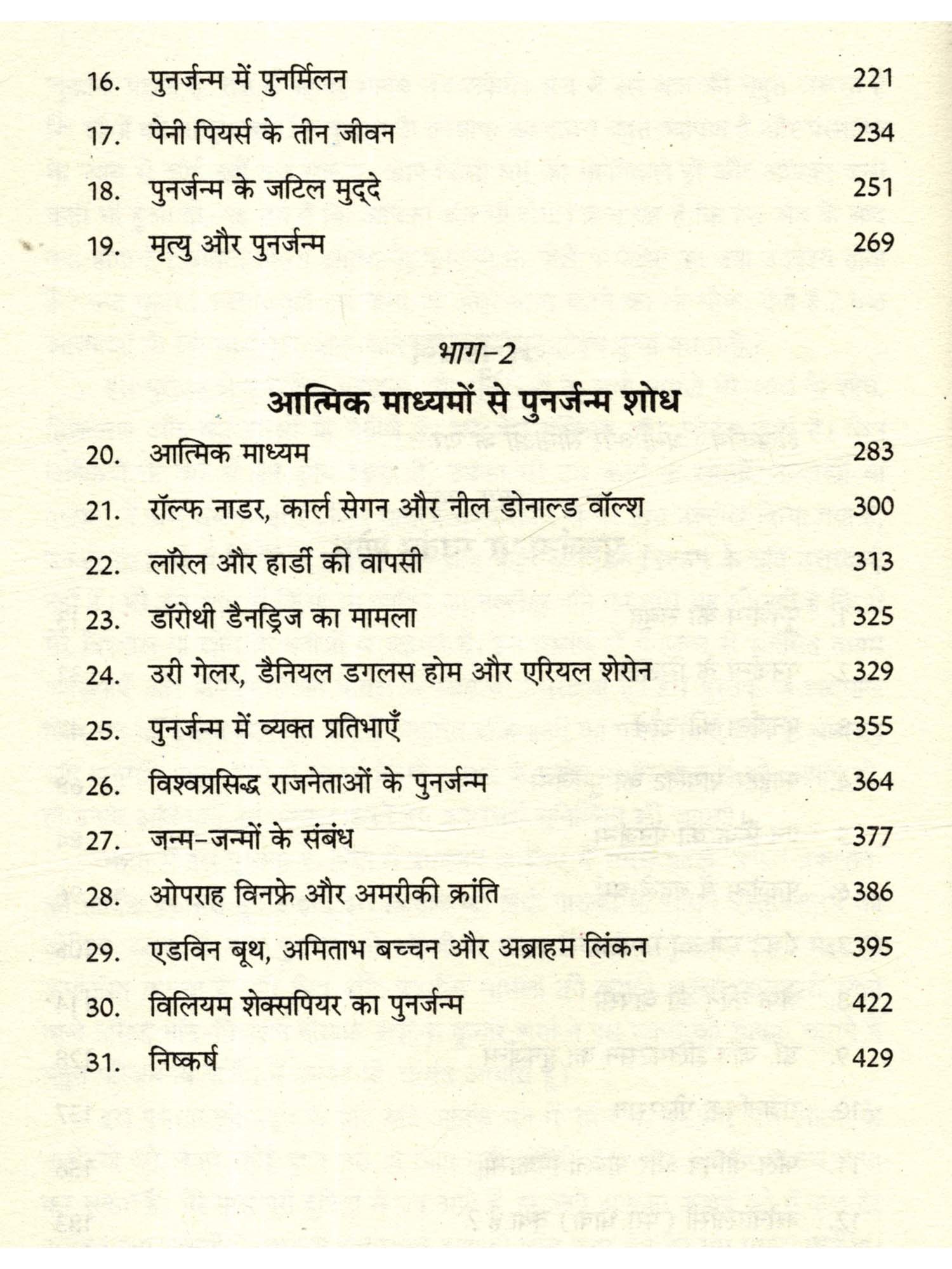 पुनर्जन्म से संबंधित मामलों में दुनिया भर में डॉ. वाल्टर सेम्किव को निर्विवादित रूप से सर्वोच्च विशेषज्ञ माना जाता है। इस पुस्तक में पुनर्जन्म से संबंधित बेशुमार लोकप्रिय मामलों को बेहद सरल सारांशों के साथ संकलित किया गया है। पुस्तक में लेखक ने पुनर्जन्म के सिद्धांतों की भी बहुत सरल ढंग से समीक्षा की है। बताया गया है मुखाकृति, व्यक्तिगत गुणावगुण, पसंद-नापसंद, प्रतिभा और आदतें भी आश्चर्यजनक ढंग से एक जीवन के बाद दूसरे जीवन में भी साथ नहीं छोड़तीं। डॉ. सेम्किव ने विश्वविख्यात परा-मनोवैज्ञानिक और पुनर्जन्म विज्ञान के दिग्गज इयान स्टीवेंसन द्वारा किए गए शोध का जिक्र करते हुए यह भी बताया है कि जीवन भर साथ निभानेवाली अनेक आत्माएँ एक साथ पुनर्जन्म हासिल कर लेती हैं। कई मामलों में स्त्रियाँ पुरुष बन जाती हैं और पुरुष स्त्री। इस पुस्तक में क्सेनोग्लॉसी (परा-भाषा) मामलों का भी जिक्र है, जिनमें पाया गया कि मरने के बाद भी पिछले व्यक्तित्व का नाश नहीं होता और कई लोगों में ऐसी अद्भुत क्षमताएँ आ जाती हैं, जो उन्होंने कहीं सीखीं ही नहीं। देश, जातियाँ और धर्म भी पुनर्जन्मों के समय बदलते रहते हैं। डॉ. सेम्किव कहते हैं कि पुनर्जन्म मामलों की इस जानकारी से मानवता को संकीर्ण सोच से ऊपर उठने की प्रेरणा मिलेगी। हमेशा कौतूहल और उत्सुकता का विषय रहे 'पुनर्जन्म' पर एक व्यावहारिक और प्रामाणिक पठनीय पुस्तक ।