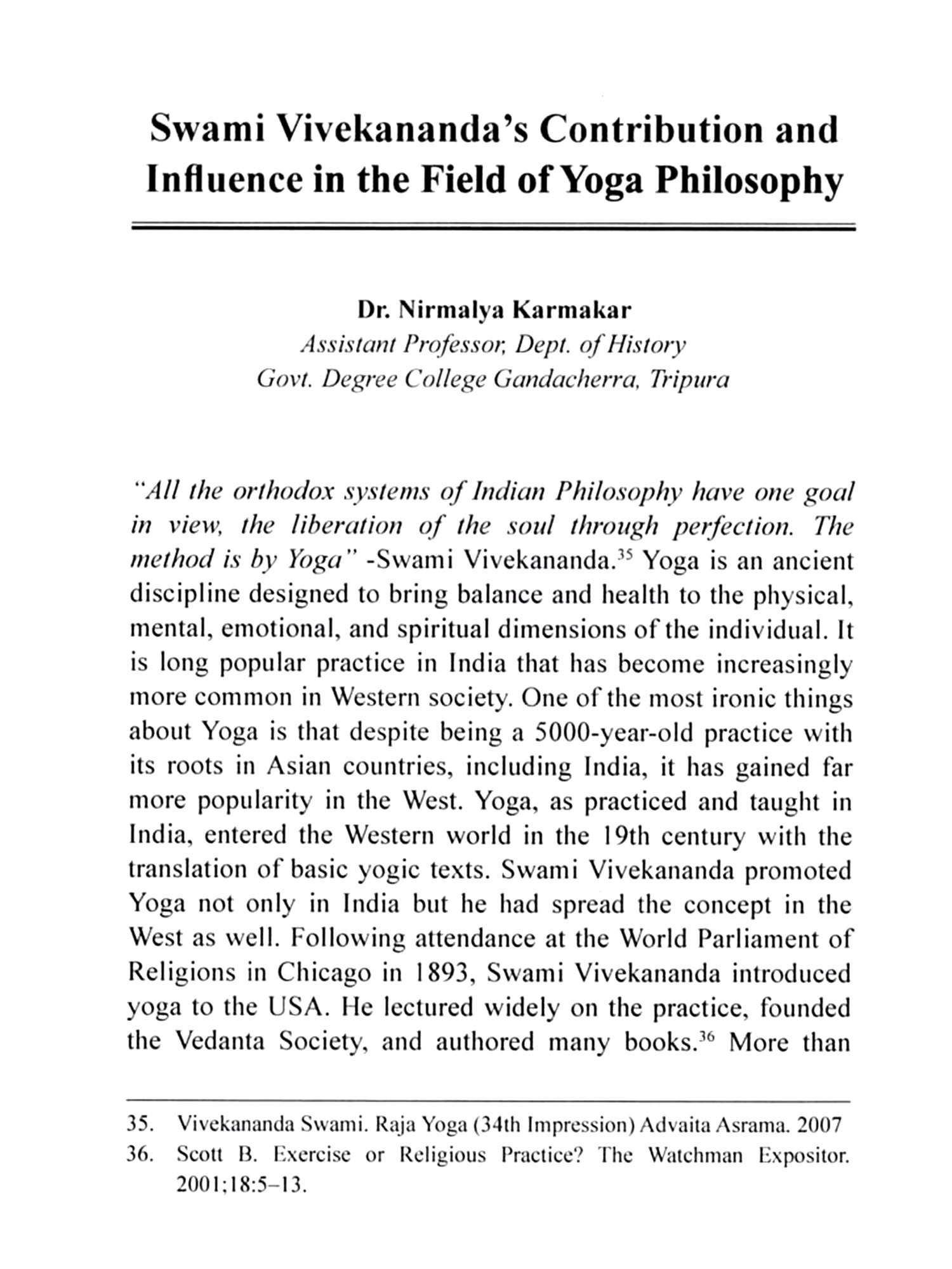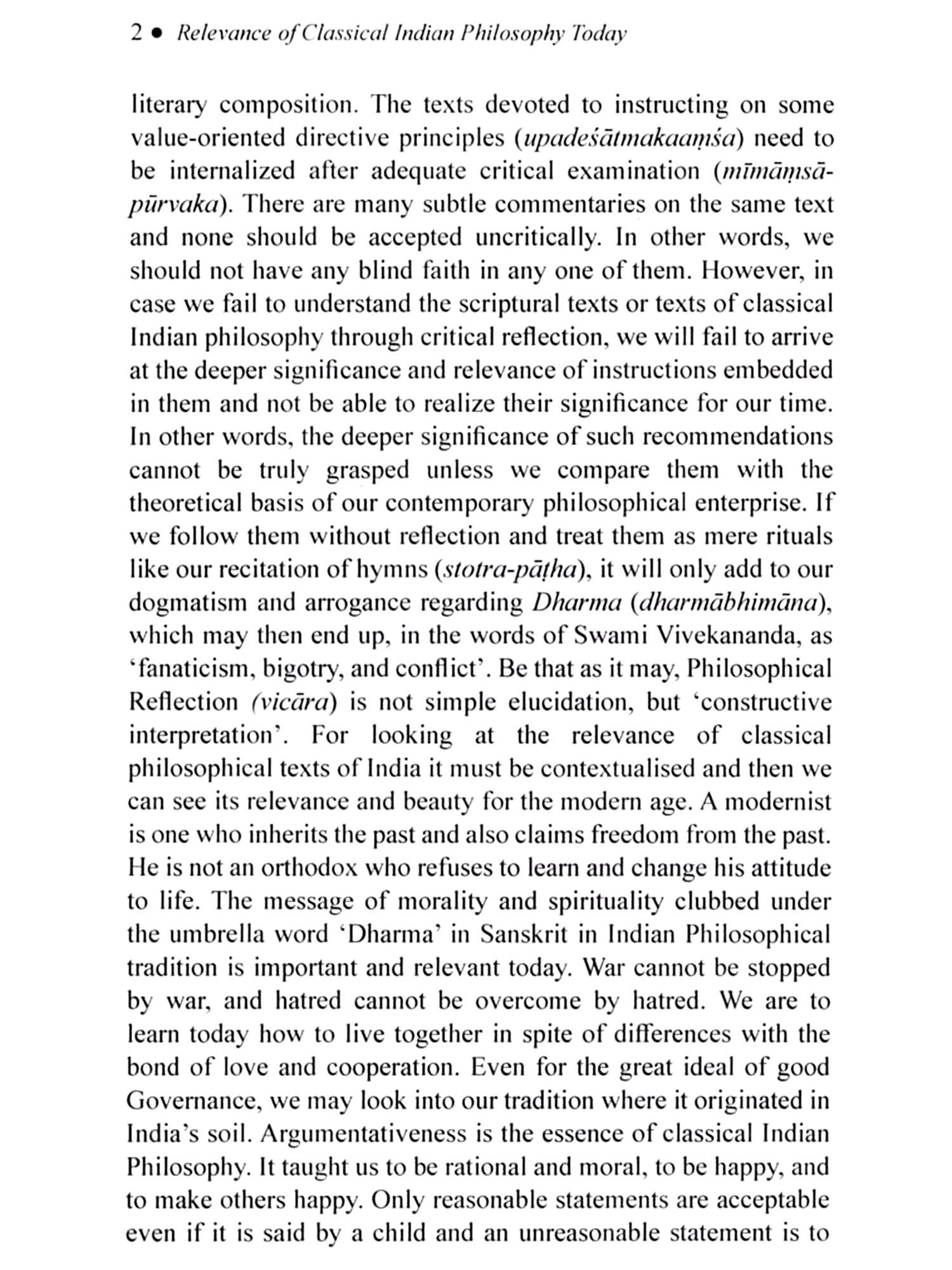Philosophy is an outcome of the impulse of an interrogative mind to know the reality of the world. Thus, it is termed as darsana, "The vision of Truth", in Indian literature. But in its widest etymological sense philosophy means 'love of knowledge'. Globally 'castern' and 'western' are two broader categories of philosophy. Metaphysics, epistemology, logic, ethics, and aesthetics are the main branches of western philosophy. Eastern or Indian philosophy denotes the philosophical thoughts of ancient and modern Indian thinkers, therefore Indian philosophy could be categorized under classical Indian philosophy and modern Indian philosophy. Modern Indian philosophy refers to the philosophical thoughts of modern minds like Gandhi, Aurobindo, Vivekananda, etc. Classical Indian philosophy denotes nine classical systems. They are six astika-darsana or orthodox schools of Indian philosophy, viz. Mimamsa, Vedanta, Samkhya, Yoga, Nyaya & Vaisesika, and three nastika-darsana or heterodox schools of Indian philosophy, viz. Carvak, Bauddha & Jaina. These aforementioned six chief orthodox philosophical schools are called ustikas, because they accept the authority of Vedas and the other three do not believe in the authoritativeness of the Vedas, thus called nāstikas. Among six orthodox schools, Samkhya school is the oldest and was founded by the sage Kapila. It is a philosophy of dualistic realism, in that purusa and prakrti are two ultimate realities. Including these two, there are altogether twenty-five principles in Samkhya, viz. mahat, ahaṁkāra, five jñānendriyas, five karmendriyas, mind, five tanmatras and five mahabhutas. The Yoga school was founded by the sage Patanjali, and his Yogasutra is the authoritative text of this system. Yogasutras are divided into eight limbs, they are yama, niyama, āsana, pranayama, pratyahara, dharana, dhyana, and samādhi. Sage Jaimini is the founder of this school the Mimämsä/ Pürvamīmamsa school. The main objective of this school is to interpret and establish Vedic ritualism. According to this, it requires unquestionable faith in the Vedas and the regular performance of the Vedic fire sacrifices to sustain all the activity of the universe, and salvation can only be attained by acting in accordance with the prescriptions of the Vedas. The Vedanta/Uttaramimaṁsa school concentrates on the philosophical teachings of the Upanisads, the last part of the Vedas. Thus, it is rightly called Vedanta, and this school is separated into six sub-schools, viz. Advaita, Visişțādvaita, Dvaita, Dvaitādvaita, Suddhadvaita, and Acintya Bhedabheda. The Brahmasutra of Badarāyaņa, and commentaries written on these sutras by many subsequent writers like sankara, Rāmānuja, etc. are authoritative texts of the school. Nyaya school is based on the Nyayasutras, written by Akşapāda Gautama. Its methodology is based on a system of logic that has subsequently been adopted by the majority of Indian schools. Its followers believe that obtaining valid knowledge through perception (pratyaksa), inference (anumana), comparison (upamana), and testimony (sabda) is the only way to get release from suffering. Sage Kanada also known as Uluka is the founder of the Vaisesika school. It is closely associated with the Nyaya school, because both have the same end in view, i.e. liberation of the individual self, and except few differences both have closely related metaphysical theories. It is atomist and pluralist in nature. The basis of the school's philosophy is that all objects in the physical universe are reducible to a finite number of atoms, and Brahman is regarded as the fundamental force that causes consciousness in these atoms.