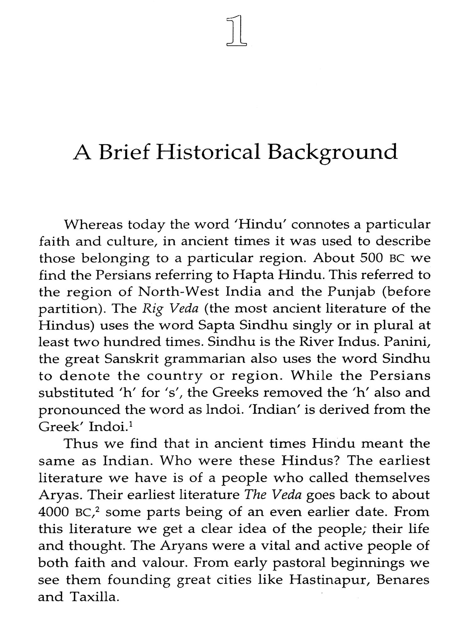This writer was similarly placed some ten years ago when she started her study. She found that while there were many large volumes dealing with one or the other aspect of Hindu thought and culture, their size as well as their language made it impossible for those without the necessary leisure to study them. Their language quite often was both abstract as well as obtuse. Another kind of book was more keen on effect than information and served to misinform rather than inform. There are also the books written without proper understanding based on superficial reading and ill-digested study. These only serve to perpetuate misconceptions.