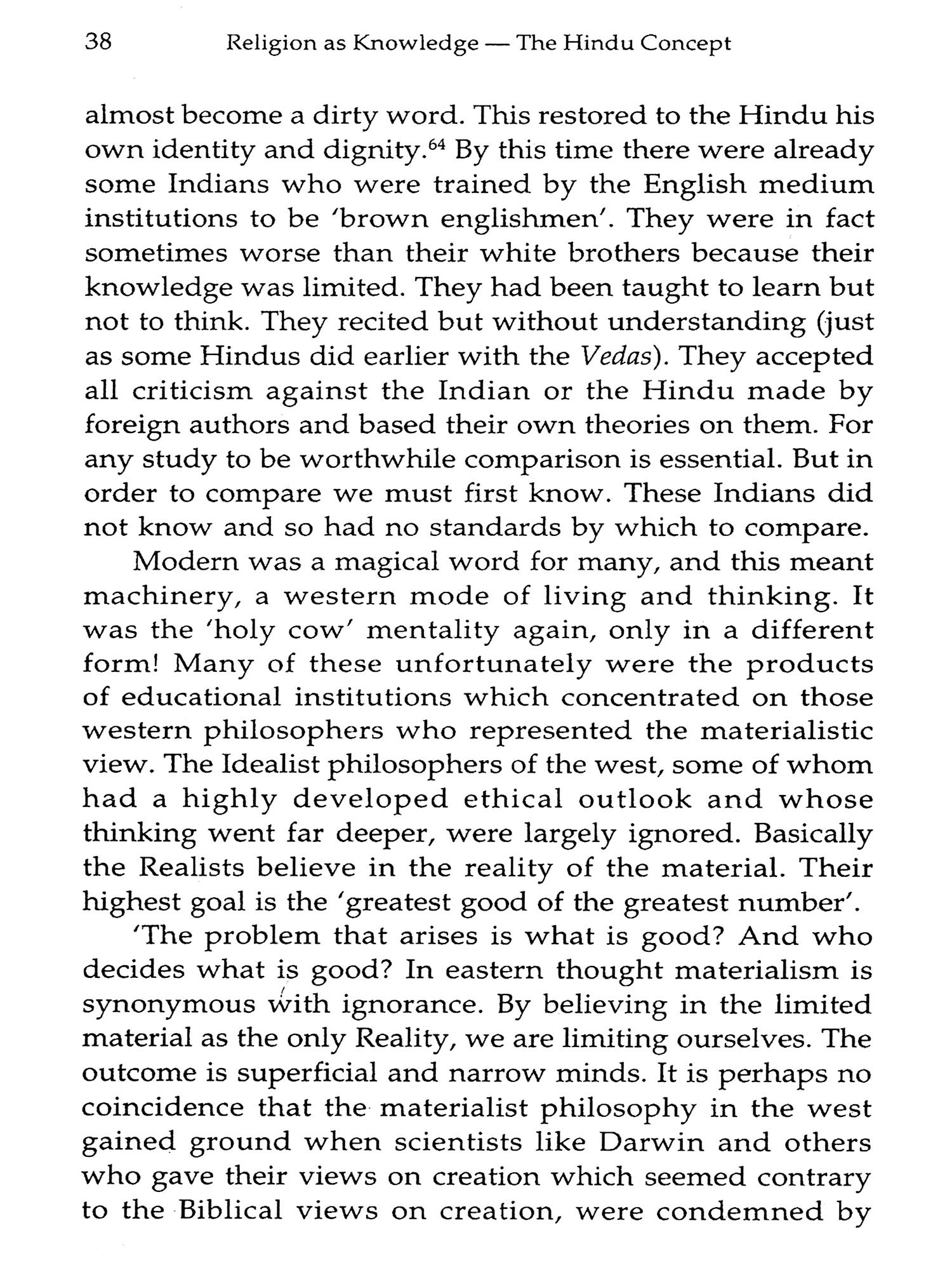 The Hindu philosophy relating knowledge to action will be seen to have helped Hindus adapt to each age and place. It has given Hinduism its demonstrable staying power. It provided the essential needs of a civilization.