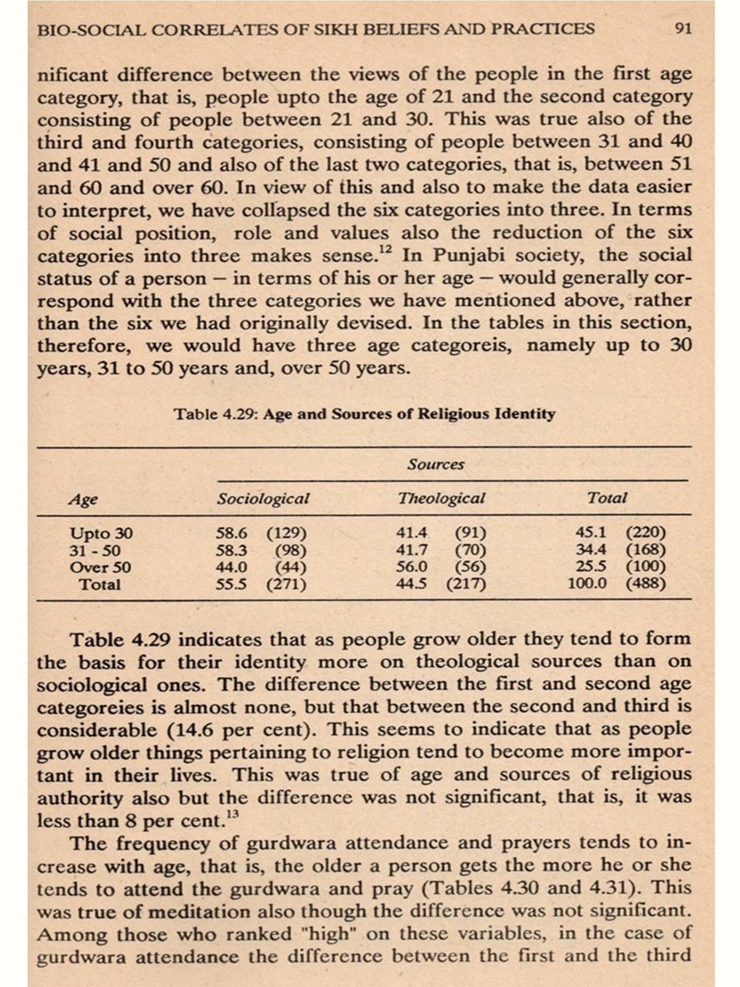Five hundred Sikhs from six villages in Gurdaspur district in the Punjab were interviewed to collect data for this study. This was done during the two years prior to Operation Bluestar in the Golden Temple, Amritsar in 1984. A similar study done now would quite possibly present different results, for the beliefs, practices and attitudes of a religious community in times of acute crisis are likely to differ from those held during normal times. But generalizations need to be based on "normal times." The Sikhs, like most other religious communities, have evolved through numerous bouts of acute crisis. They all passed; it is our hope that this crisis too will pass and nor-mal times will be back again, generally validating the data presented in this study. It would be interesting to conduct a comparative study after a few years.