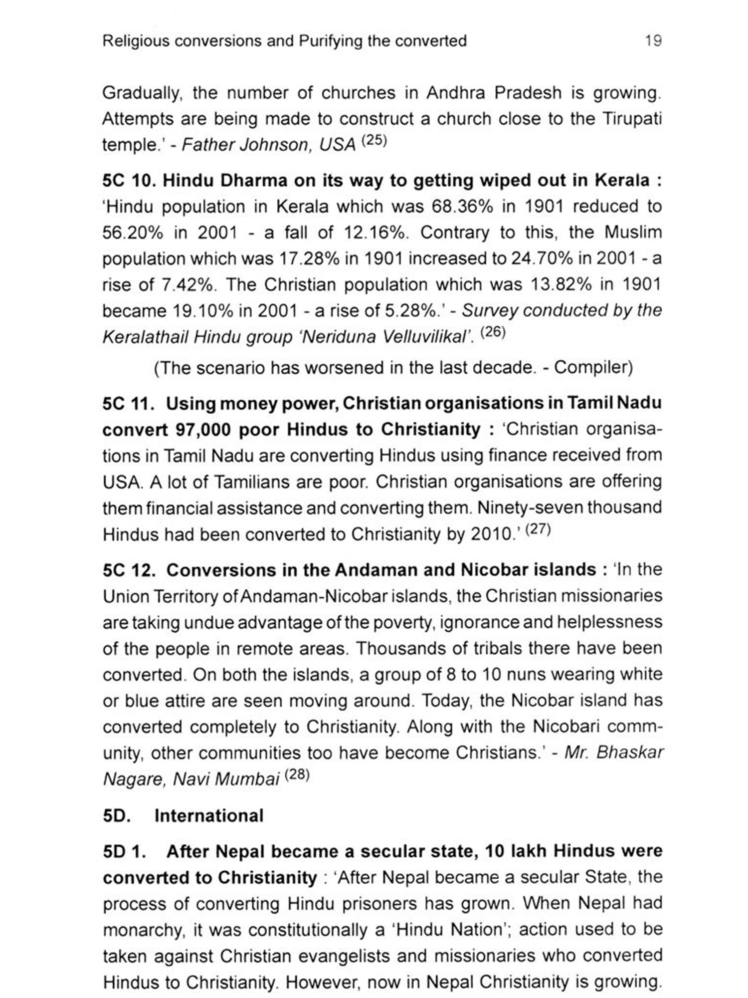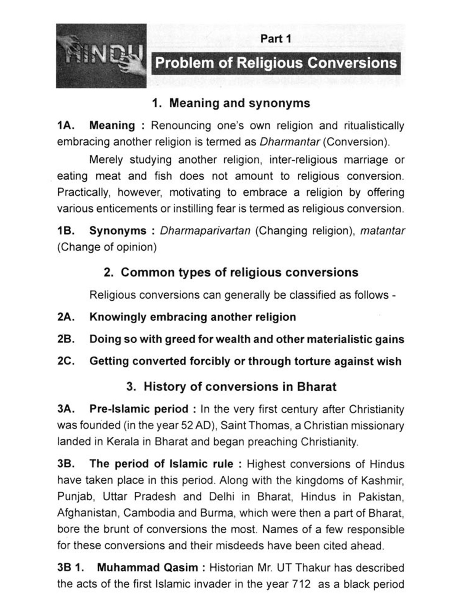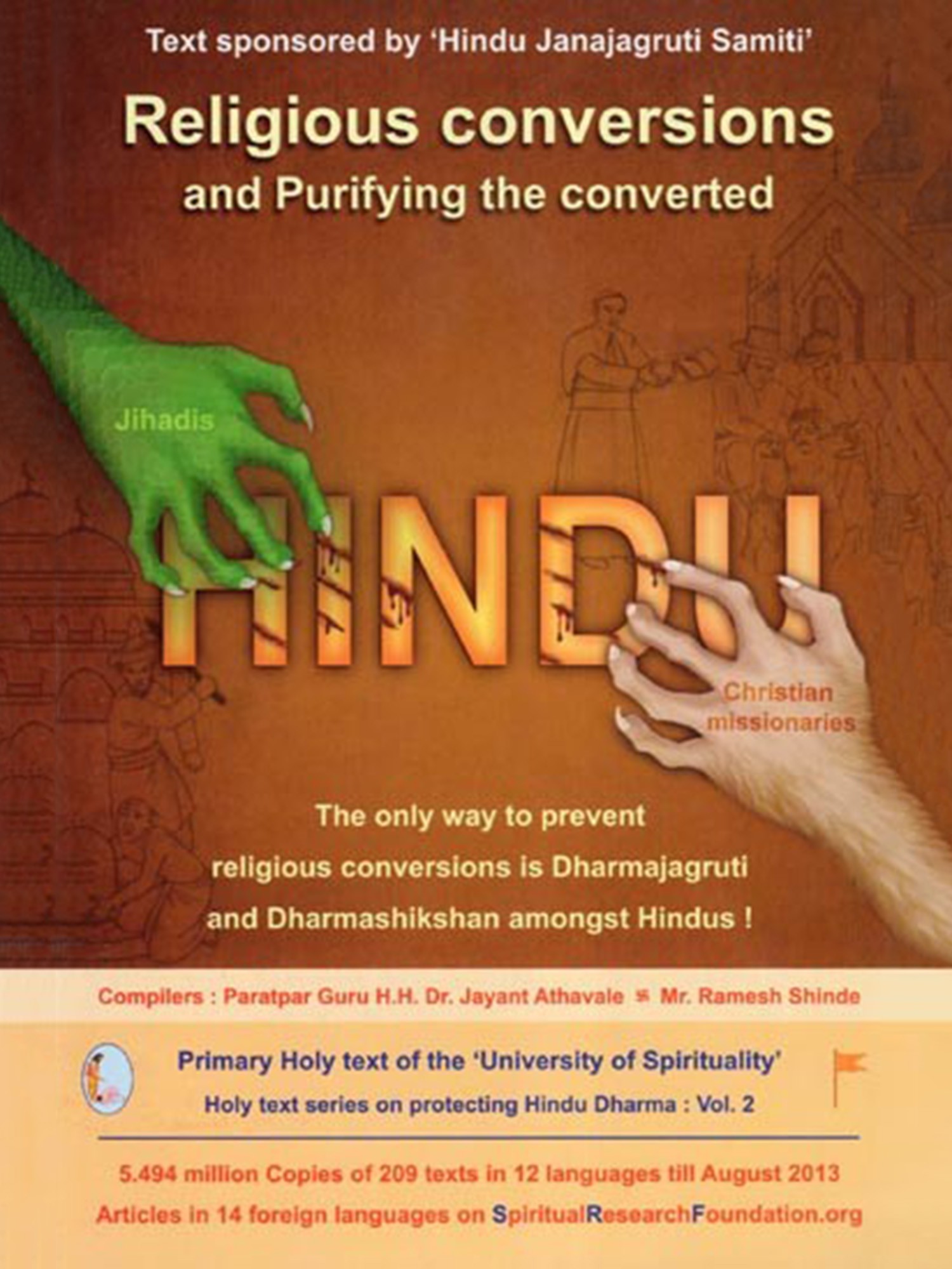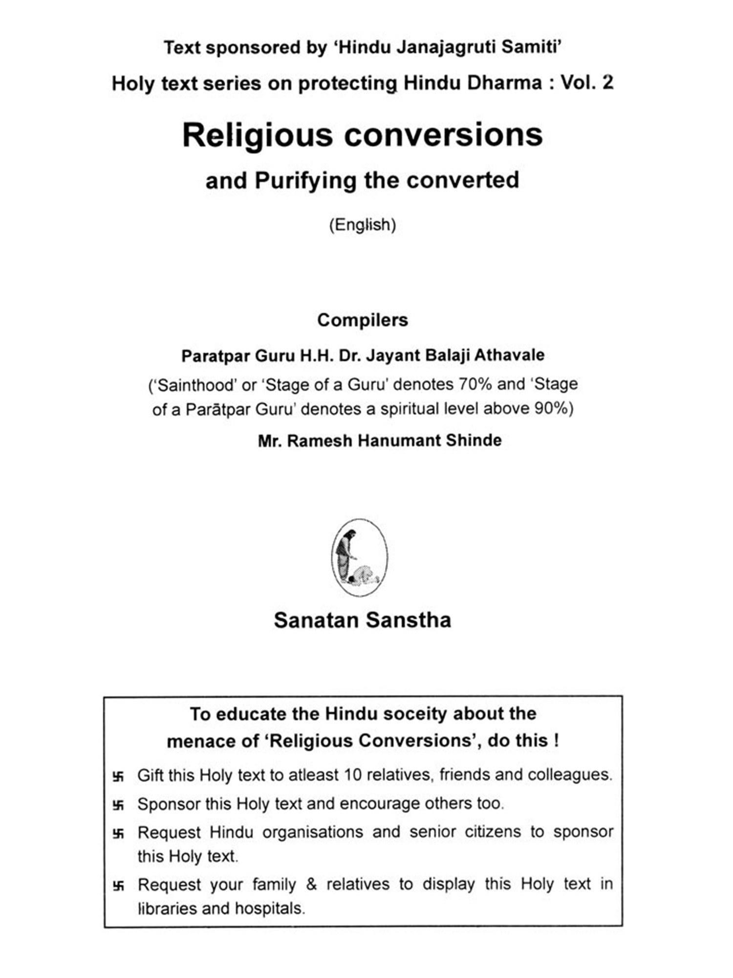 Conversions of Hindus by non-Hindus are a well-planned conspiracy. This Holy text elaborates upon the foreign aid received for this mission as well as social, cultural, national and international repercussions of the conversions. It also elaborates on the measures to be adopted by the Hindu society, Hindu organisations and the Union Government to curb this menace. A separate chapter on the 'Purification of the Converted' is included towards the end in this Holy text.