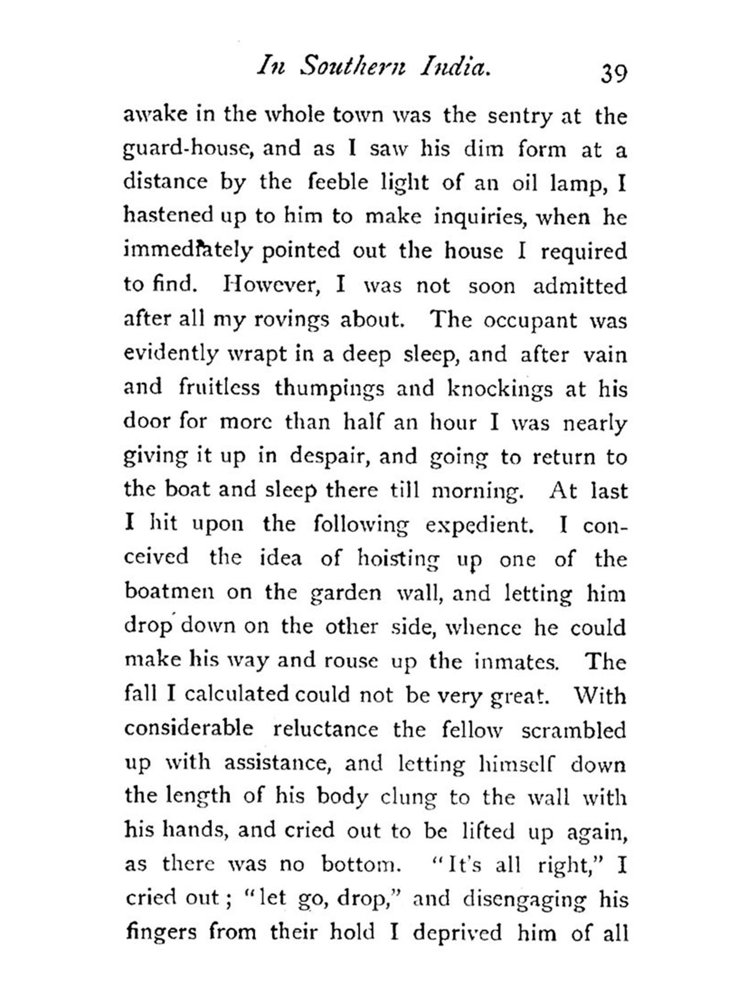 IT may seem presumption in one whose acquaintance with India and its people only extended over a limited portion, and that chiefly in the South, to come forward as an author, when so many more gifted persons have written and are writing on subjects connected with the governing and governed classes. The younger Pliny in one of his letters quotes the dictum of his uncle, the naturalist, that no book was so bad, but that profit might be derived from some part of it. I take courage from this truism, and even if, as is most probable, the worthless far exceeds the good, yet I must throw myself on the clemency of my readers, and submit to the consequences. Without any Pretension to grandeur of diction, I have put together, sometimes in the shape of narrative, and at others in extracts from my Journals, such incidents, albeit trivial, as happened to me during my varied career, together with occasional remarks and anecdotes of the people with whom I lived. In every country which, like India, may be considered in a transition state, where, in spite of many conflicting interests, intellectual improvement is advancing with rapid strides, and where Progress is the watchword of the masses, it necessarily follows that new ideas and forms of thought must penetrate and mould themselves in the minds of men who are accepting the benefits of educational reform. In this case a new type of civilisation is grafted upon the effete superstitions and ignorance of the past; and antiquated customs, however quaint and barbarous, get lost and forgotten in the march of improvement and change. To preserve the interesting records of habits fast passing away, is one of the objects aimed at in these pages. And thus I launch my boat to swim or sink in the stream.