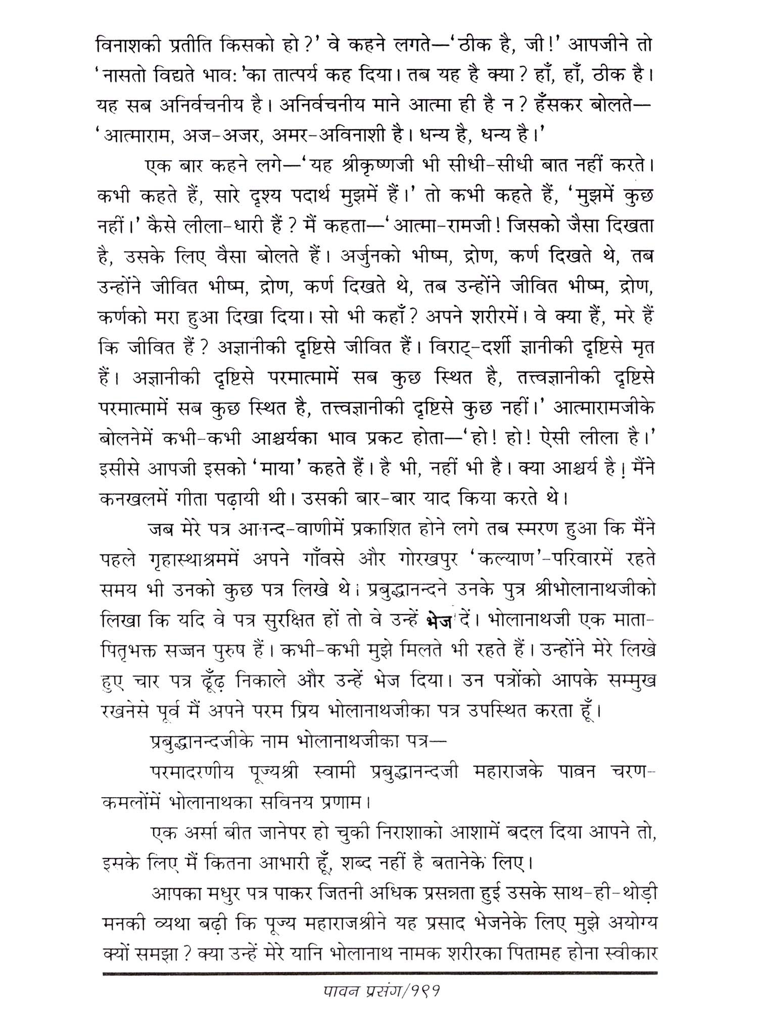सत्साहित्य प्रकाशन ट्रस्टके द्वारा प्रस्तुत ग्रन्धके रूपमें प. पू. महाराजश्रीकी एक अनुपम कृतिको भक्तों और जिज्ञासुओं तक पहुँचानेमें हमें अत्यन्त अनुभव हो रहा है। इस ग्रन्थमें छपे लेख 'आनन्द बोध' मासिक पत्रिकामें क्रमसे प्रकाशित हुए थे। तदनन्तर इन लेखोंके एकत्रित प्रकाशनकी माँग निरन्तर बनी रहीः क्योंकि ये लेख प. पू. महाराजश्रीने स्वयं आत्मकथ्यके रूपमें लिखवाये थे। हमें प्रसनता है कि अब यह कार्य सम्पन्न हो सका है। इस पावन प्रसङ्ग‌में अभी उन्हीं महापुरुषोंके सन्दर्भमें प्रकाश डाला गया है, जिन्हें आनन्द बोधके अंकोंसे संकलित किया जा सका है-इनके अतिरिक्त भी अनेक महापुरुषों-गृहस्थोंके संस्मरण अन्यत्रसे संकलित करने शेष हैं। पूज्य महाराजश्रीकी कृपासे एवं आपके सहयोगसे उन्हें भी निकट भविष्यमें प्रकाशित किया जायेगा। निश्चय ही प. पू. महाराजश्रीने अपने जीवनके इन पावन प्रसंगोंमें पदे-पदे भक्तों एवं जिज्ञासुओंके लिये प्रचुर मात्रामें बेजोड़ साधन-सूत्र दिये हैं। इनको यदि मनन करके हम जीवनमें धारण करेंगे तो हमारे चित्तके मल, विक्षेप एवं आवरण रूपी दोषोंका शीघ्रतातिशीघ्र प्रक्षालन हो सकेगा। श्री 'विष्णु' द्वारा लिखित भूमिका भी ग्रन्थमें पठनीय है। प्रस्तुत ग्रन्थके प्रकाशन हेतु श्री 'विष्णु' का ट्रस्टको आर्थिक सहयोग स्तुत्य है। श्री बाबाजी एवं उनके आत्मज चि. सोमदत्त द्विवेदी एवं चि. शिवदत्त द्विवेदीने ग्रन्थके सम्पूर्ण मुद्रणका कार्य अति दक्षतापूर्वक सम्पन्न किया है इसके लिये हम इनको हृदयसे साधुवाद देते हैं।
