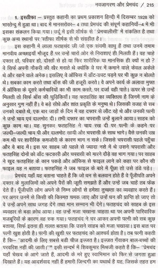 इसी तरह पुस्तकों के चयन से मुझे ज्ञात हुआ कि हिन्दी साहित्य में इसी दौरान गद्य विधा का प्रारंभ हुआ जिसके प्रवर्तक भारतेन्दु हरिश्चन्द जी थे। हिन्दी साहित्य को पढ़ते-पढ़ते यह बात निश्चित हो गई कि 'मुंशी प्रेमचंद' एक ऐसे लेखक थे जिन्होंने अपने साहित्य में भारतीय समाज की कुरीतियों को दर्शाया है। मैंने उनके उपन्यास और कुछ कहानियाँ पढ़ीं। जिसमें उन्होंने उस समय के प्रत्यक्ष भारत को प्रस्तुत किया था। मैंने उनकी कहानियों का चयन किया जिसमें मैंने कई प्रकार का वैविध्य पाया था। बस फिर क्या था? मैंने प्रेमचंद की कहानियों को 'नवजागरण' के आधार पर अपने शोध का विषय बनाने का निश्चय किया। गुरुजनों के साथ वार्तालाप करने के बाद यह निश्चित किया गया कि मेरे शोध-प्रबन्ध का विषय "नवजागरण काल एवं प्रेमचन्द की कहानियाँ" रहेगा।