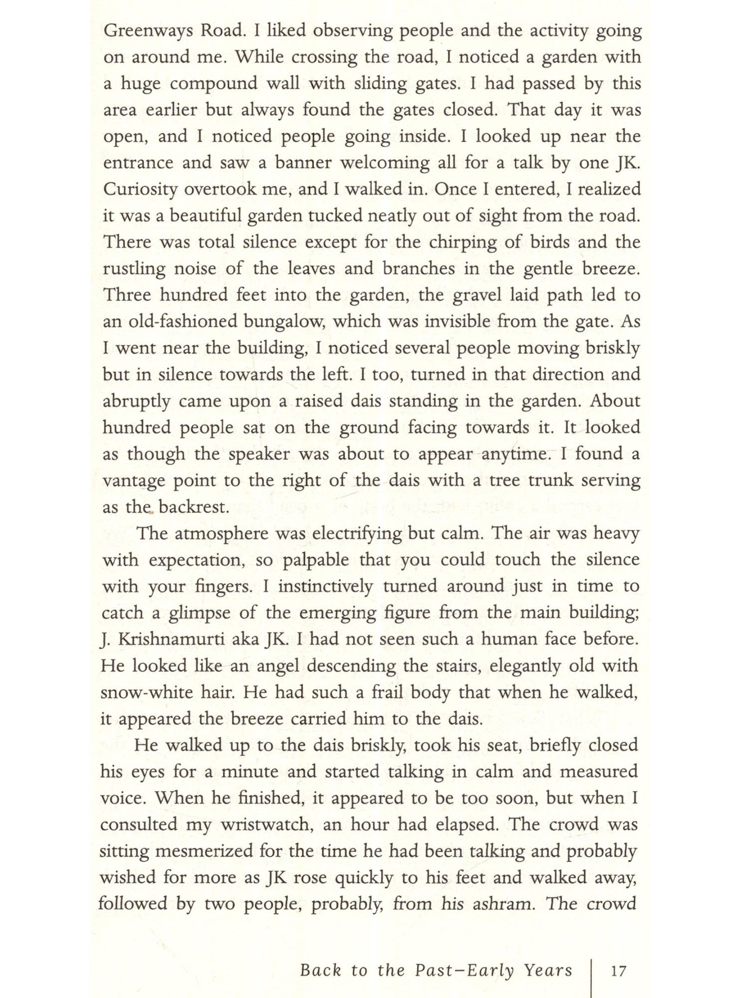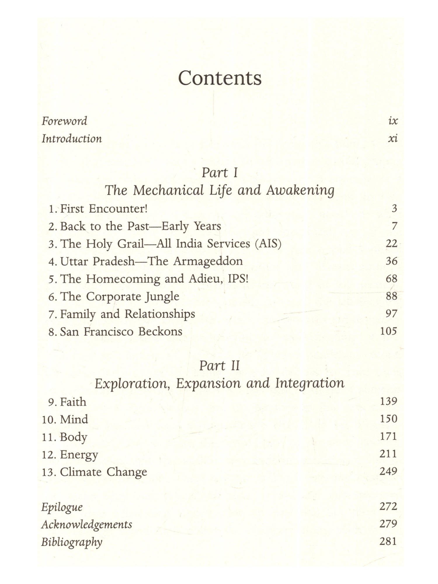 Much premium is placed on serving society. I agree, but I have a point of view here. While I don't advocate a selfish life, I don't believe in an entirely 'selfless' life too. Discovering the self-not the 'ego self but the real self buried under the debris of one's ego should be the primary goal in one's life. One needs to remove the dirt and clear the way for the self to emerge. Serving society helped me in a way to do this, but finding the real self, and thereby meaning, remained my responsibility. I gave twenty-five years of my life to serving the society, and I feel contented about it. The remainder was meant to be spent in seeking my real self. I expect this book to reflect the efforts made by me to do precisely that. Earlier, I took decisions in a mechanical way, be it decisions about what I should study, what work to do and when should I marry and set up my family. Midway through my service, my consciousness stirred awake and slowly I started taking responsibility for my life and made decisions accordingly. There were repeated temptations to return to my former ways, but I stood firm; four times I was given the offer for 'better' postings, but I decided to go to the place I wanted to work in and did what I wanted to do. When I could no longer do that, I decided to quit rather than follow meekly the path shown by the service. If my service and work years took me to different places and exciting experiences, my favourite books and their authors took me on equally exciting journeys of my mind. My consciousness, from being a tiny dot, expanded and soared. I lived with great scholars, philosophers and mystics in my inner realm. Different dimensions of life were revealed, and I became aware of the possibilities and potentialities of my life. Today, I'm still a work in progress. Looking at it in another way, Part I represents my physical, mechanical life consisting of career and family. The unconscious decisions took me from banks to the police service in a distant land, took on family responsibilities at an inappropriate time of life and family faced the consequences of such decisions. During this period, I came across the works of G.I. Gurdjieff and even saw and heard J. Krishnamurti personally, but the accidental inputs remained buried in my subconscious mind. This part also represents my awakening consciousness; I realized the importance of expanded awareness and acute alertness to the demands of my career and family and to say 'no' whenever needed. But the mechanical ways continued, though slightly abated. The chaos finally ended, peace descended and prosperity ensued. I became a consultant with some big corporate houses. I continued my studies, though connected purely with my career of security; an MPhil in defence studies and a PhD in aviation security. Later, I landed in San Francisco, to study MFA in art, and am continuing, as I write this, with research studies (PhD) in philosophy, cosmology and consciousness. All this while, thanks to my wife and sons who took over the responsibilities of running our day-to-day life, I stopped working and shut down the sensory inputs coming in from job, career, money and a significant part of my family life. Part II remains the most important aspect of my life; the ideas, books and authors carefully curated, so that a clear map of the journey of my mind and consciousness emerged, or so I hope. The ideas of the Fourth Way formed the basis of my quest for self-knowledge and the context for myself in the broader canvas of the cosmology and psychology of my heredity, environment, essence and personality. While my early childhood and subsequent