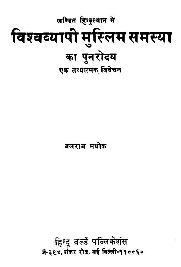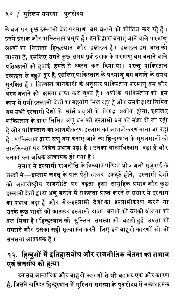 मुस्लिम समस्या विश्वव्यापी है। १४०० वर्ष पूर्व इस्लाम के उदय के साथ ही इस समस्या की शुरुआत हुई। इसके दो रूप हैं। जिन देशों की राजसत्ता इस्लामवादियों के पास है वहाँ इसका रूप दमनकारी है और जहाँ उनके हाथ में सत्ता नहीं, वहाँ उसका रूप विघटनकारी है।