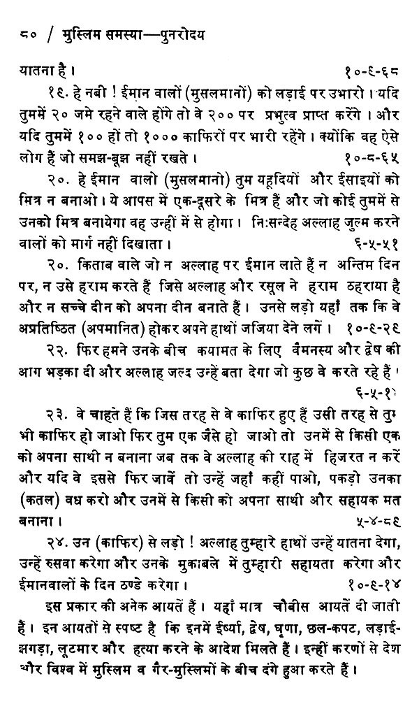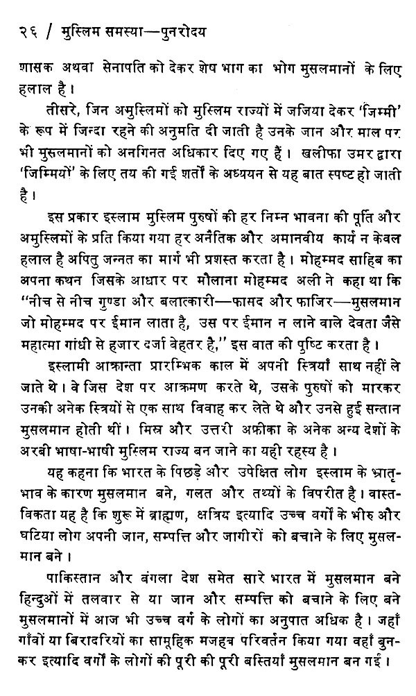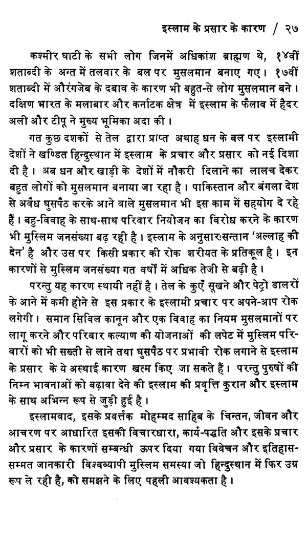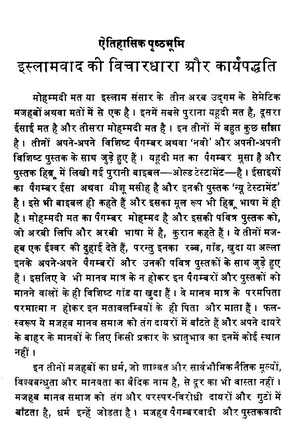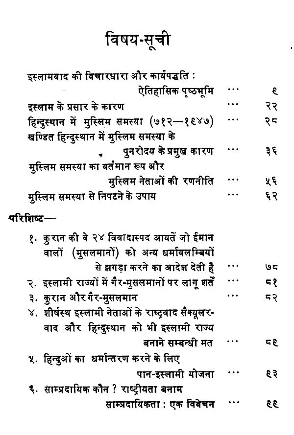 मैंने प्रयत्न किया है कि इस्लाम के सम्बन्ध में कुछ बुनियादी जानकारी के साथ मुस्लिम समस्या को इतिहास के परिप्रेक्ष्य में पेश करूं। यह विवेचन तथ्यों, तर्क और इतिहास पर आधारित है। मेरा उद्देश्य सत्य का प्रकाश करना और हिन्दीभाषी जनता को इस गम्भीर, पुरानी और विश्वव्यापी समस्या के सम्बन्ध में शिक्षित करना है, किसी का दिल दुखाना नहीं।