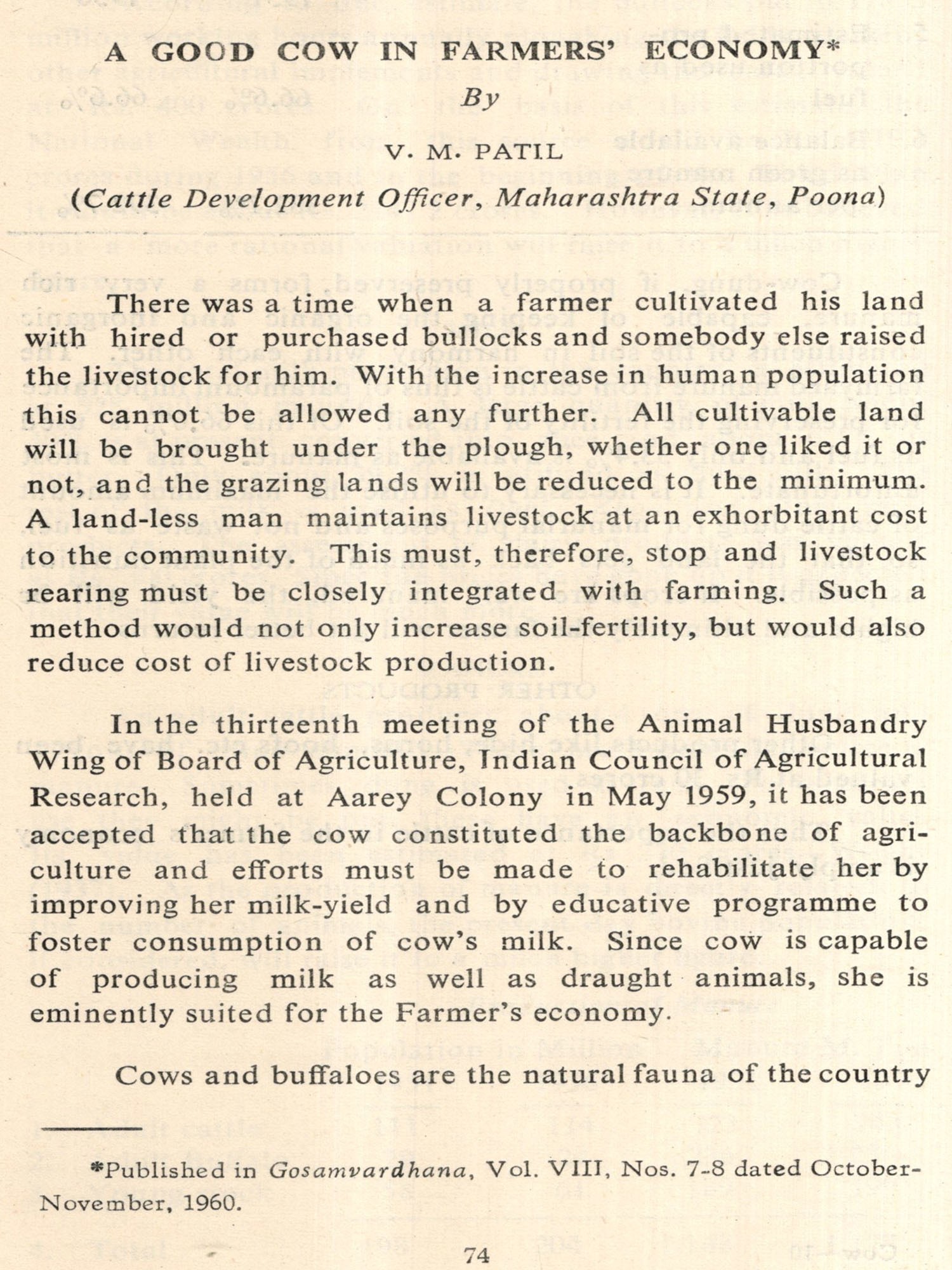 I sincerely hope that this book would help a better appreciation of the problem of the Cow in India and in re-moving the notion that it is merely a sentimental overflow of an Indian mind.