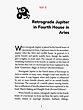 This book deals with placements of retrograde Jupiter in the first four houses of horoscope. Benefic as well as malefic effects of retrograde Jupiter have been discussed in each house of horoscope in different signs, along with relevant examples from horoscopes.