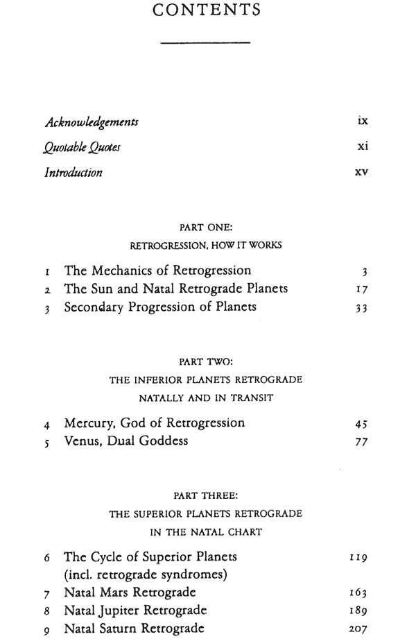 "Geocentricity might well be egocentricity." The phenomenon of retrograde motion is based on our Earth-centered view of the solar system, but the movement and cycles of retrograde planets are based entirely on the apparent motion of the Sun through the zodiac. This book organizes and explains retrograde motion from a systems viewpoint the system of the Sun and planets and interprets retrograde planets natally, by progression, and in transit.