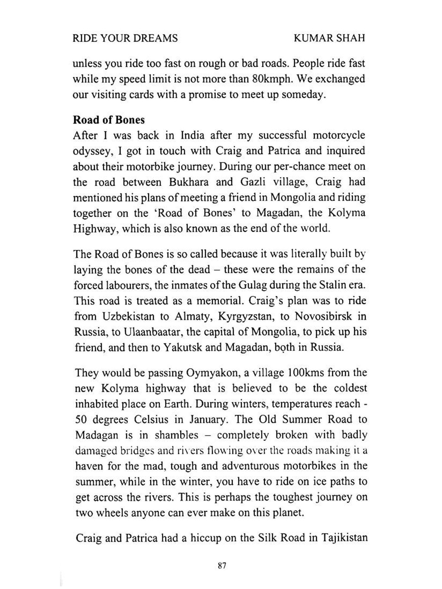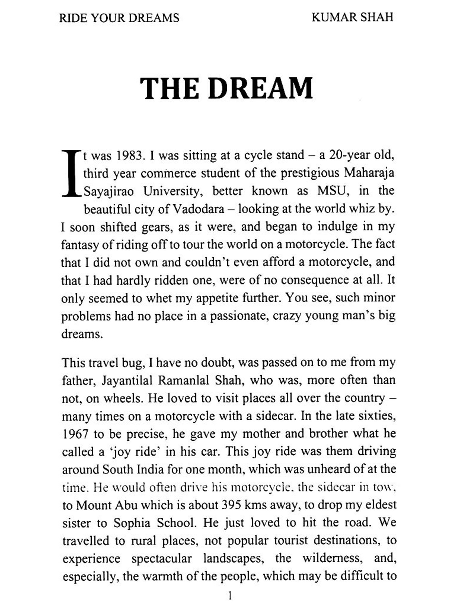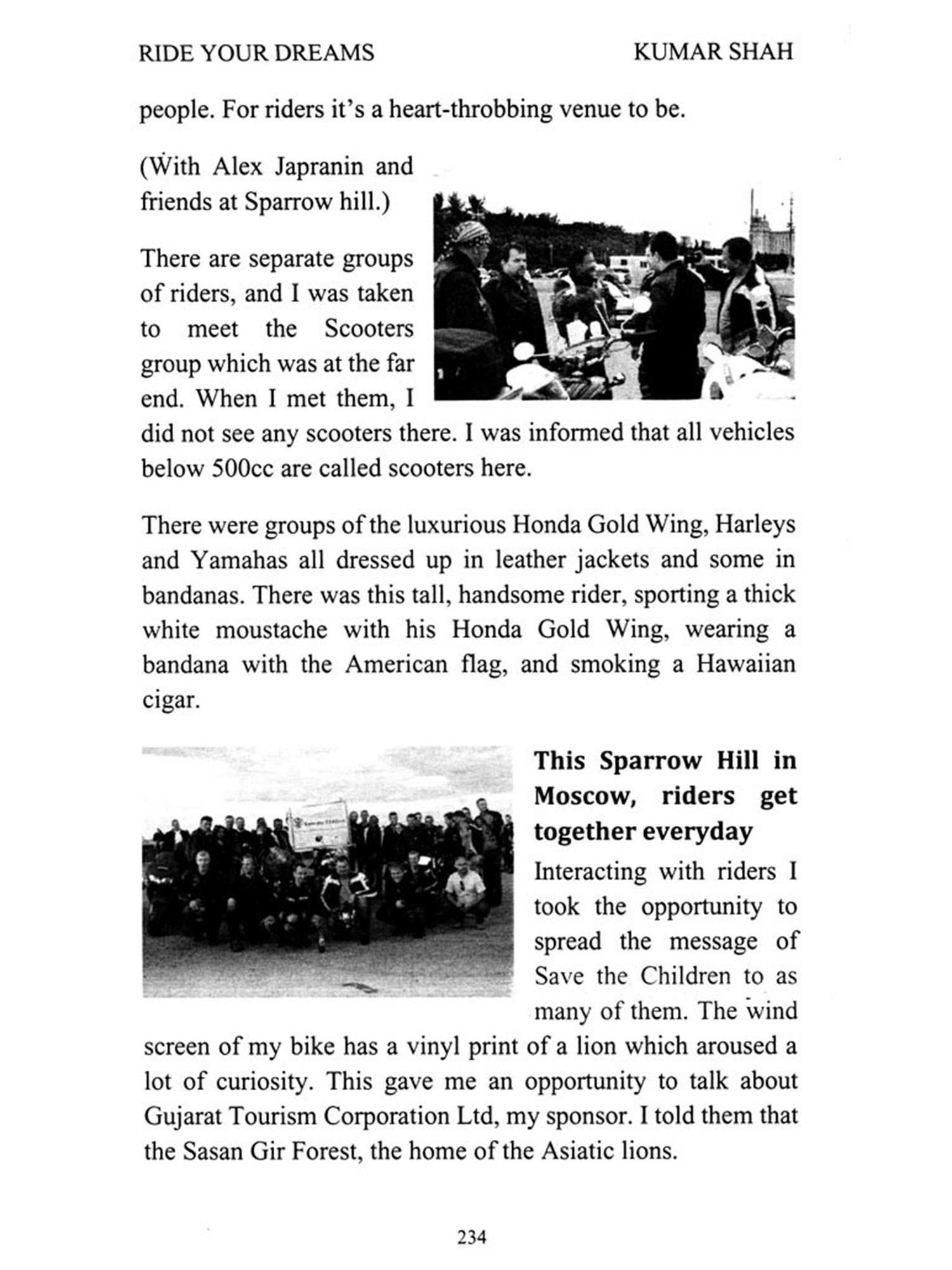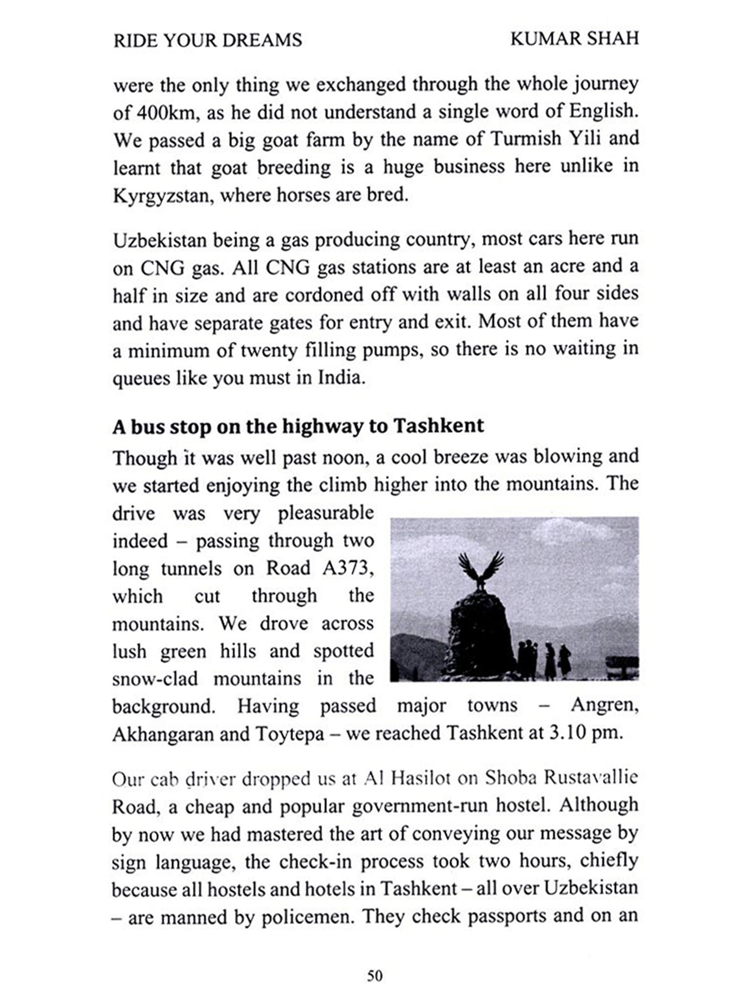 I have written this book that is intended to educate the reader about riding across multiple borders, confidently and with clarity. This book is my dedication to the entire fraternity of motorcycling. You can learn from my experiences. This book is a day-by-day account of the 76-day journey. You, the reader will feel as if you're riding pillion with me and seeing what I saw and living what I lived.